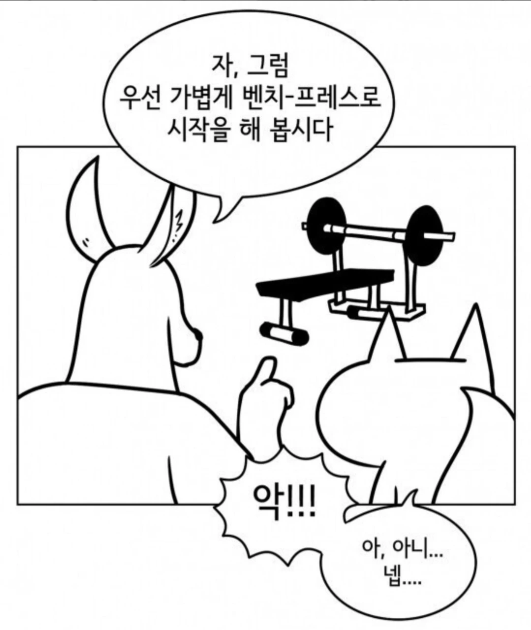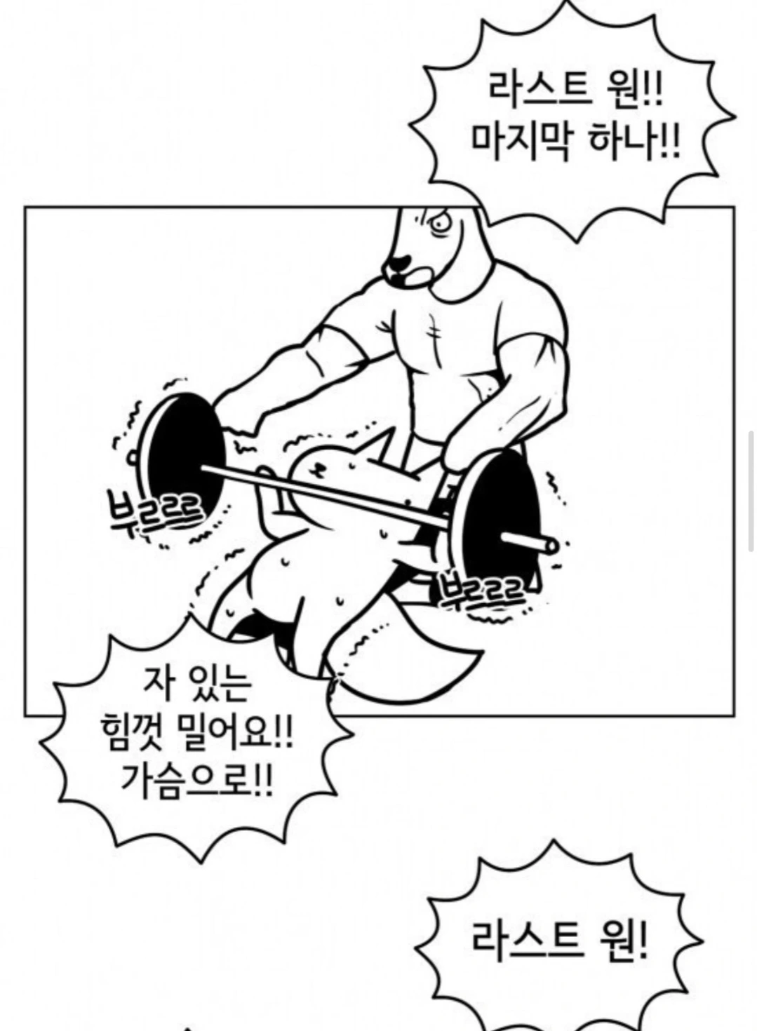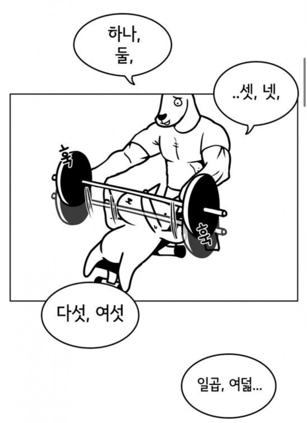 그 당시엔 동료가 조금 과하게 생각하는 건 아닌가 생각했었는데 PT를 받아보니 지금에서야 무슨 말인지 이해가 되었다. 당연히 트레이너가 놀리려는 의도는 없었겠지만 당하는 입장에선 부지부식 간에 그런 마음이 들기 마련이니. 나 역시 극한을 마주할 때마다 무슨 부귀영화를 누리려고 생고생을 사서 하는지 하는 생각을 반복하곤 했다. 오죽하면 헬스장에서 그에 관한 유머가 돌까.