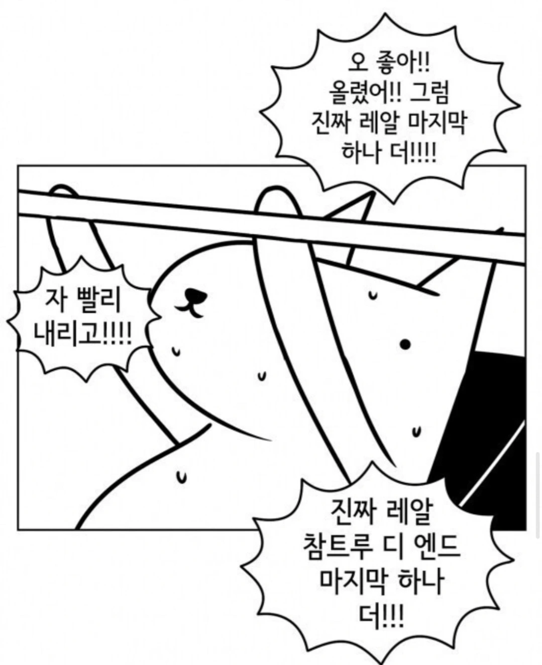"하나만 더! 할 수 있어요. 진짜 라스트 하나만 더! 자, 힘내요. 올려보세요!"