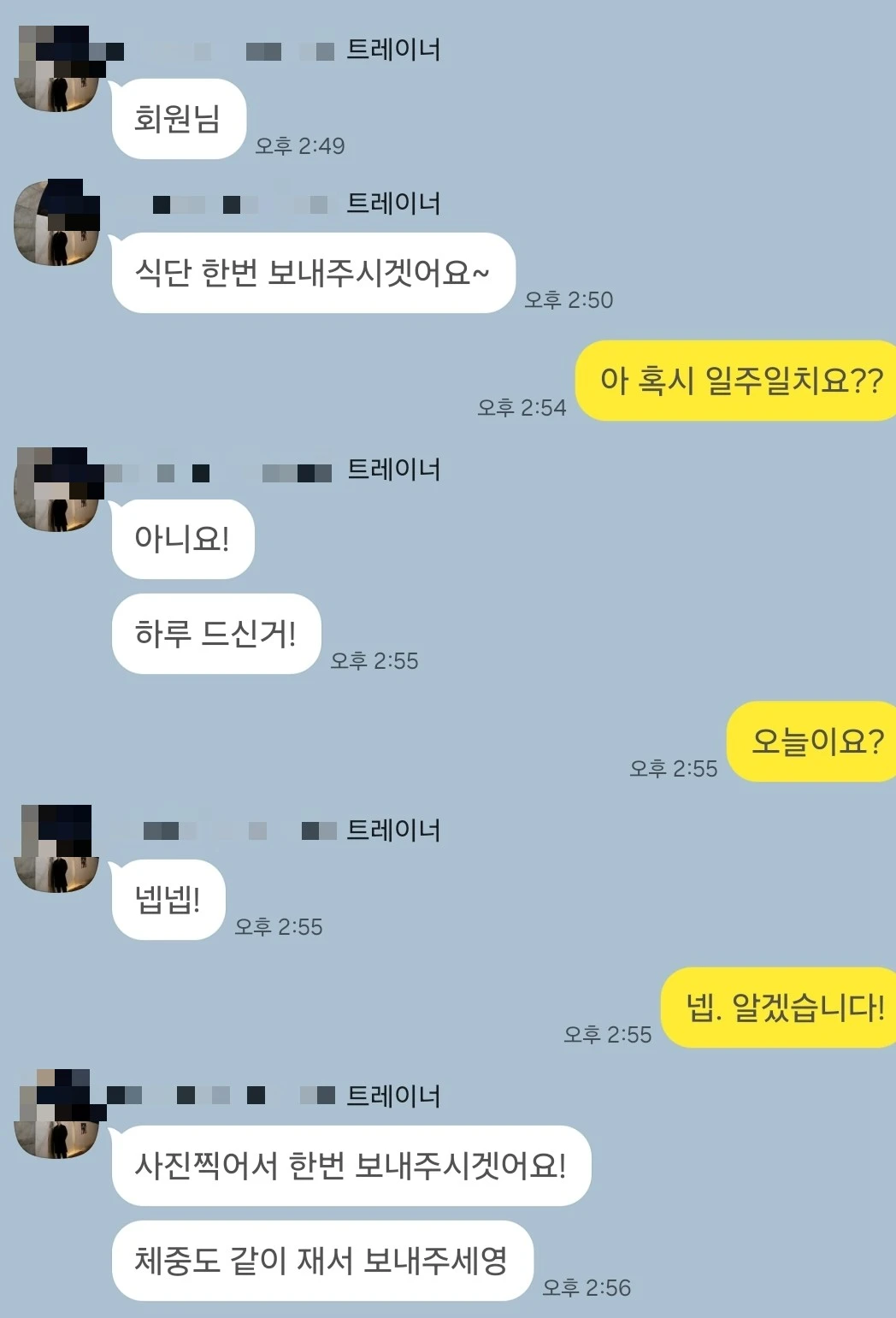 헬스장에 등록하고 얼마 정도 지났을까 못 보던 번호로 연락이 왔다. 받아보니 안내데스크 직원이었고, 헬스장에 다니는 고객을 대상으로 무료 PT를 실시하니 받을 생각이 있느냐는 것이었다. 한참을 고민하다가 좋은 기회란 생각에 알겠다고 답했다. 곧바로 트레이너에게서 연락이 왔고 날을 정해서 PT를 받게 되었다.