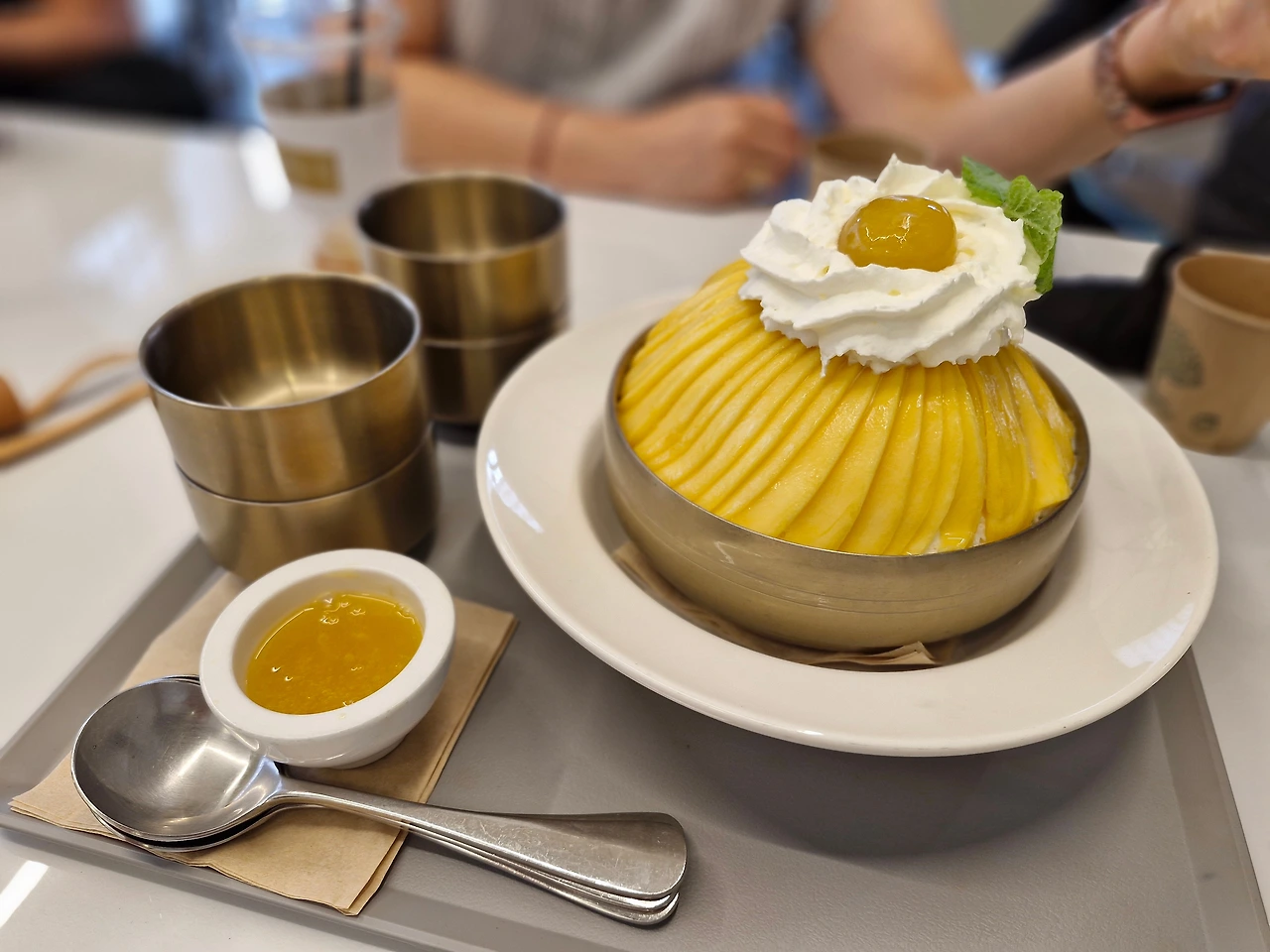 더위를 식히고자 카페에서 시원한 빙수와 커피를 마셨다. 이때 본격적인 미션 결과가 공개되었다. 나의 마니토는 우리 라라크루의 대장이자 정신적 지주인 수호 작가님이었다. 미술관의 멋진 작품에 빠져 사진을 많이 못 찍었는데, 다행히 다른 분들이 대신해 주었다. 선행은 아침에 커피를 못 마셨다고 피곤해하는 작가님께 라테를 준 정도였지만, 틈틈이 옆에서 이야기도 나누고 관심을 가졌다. 둘 만의 멋진(?) 아니 코믹한 사진도 찍었다.