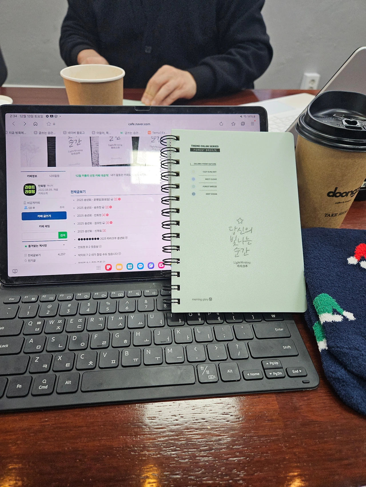 하나 둘 글벗이 도착하고 반갑게 인사를 나눴다. 선물을 준비한 회원 덕에 미리 크리스마스를 맞이한 기분이 들었다. 귀여운 수면양말, 라라크루 상징이 찍힌 수첩, 겨울 필수품 핸드크림까지 덕분에 가방 안이 꽉 찼다.