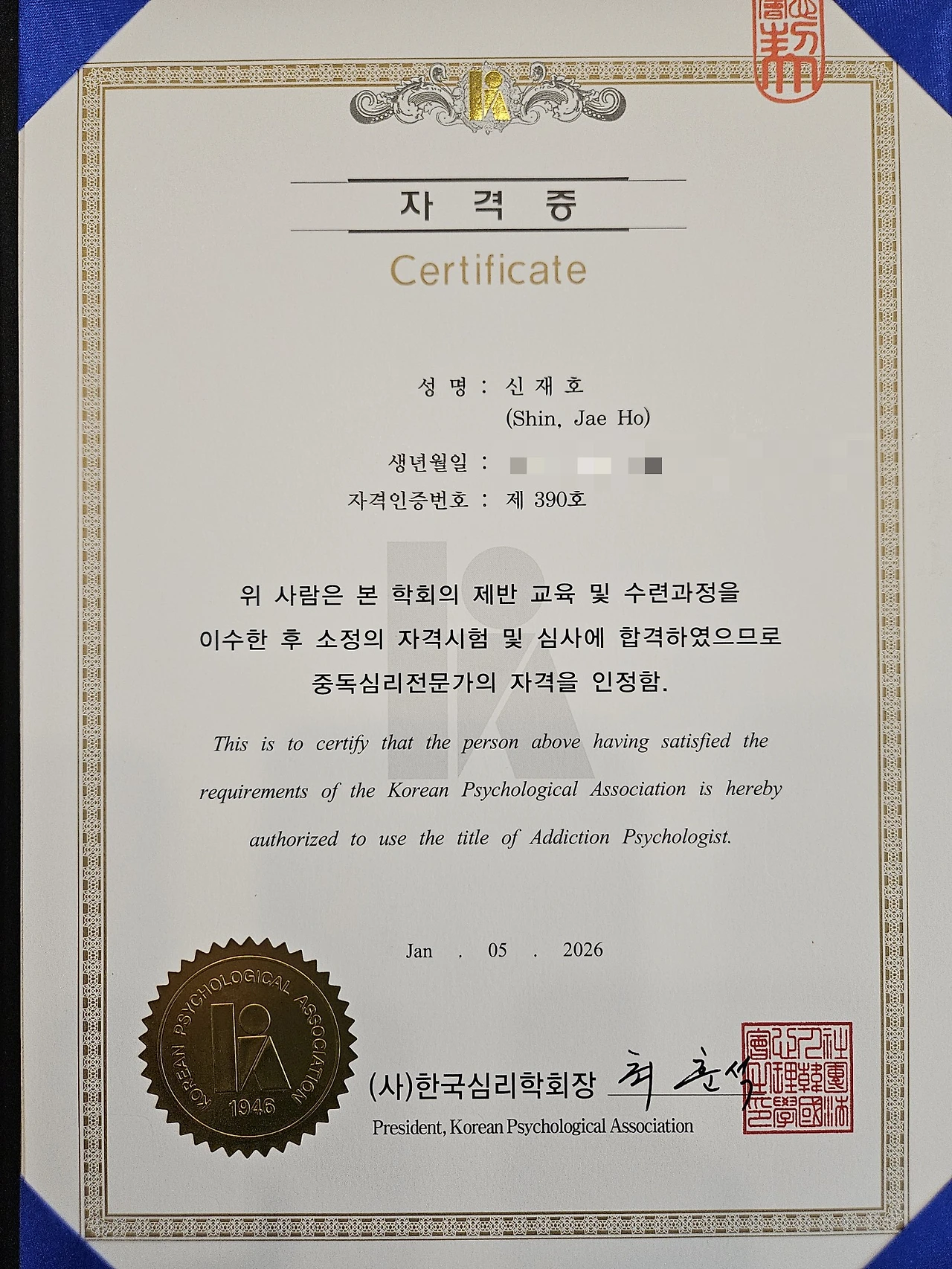 한국중독심리학회에서 발급하는 중독심리전문가 자격증을 취득하다