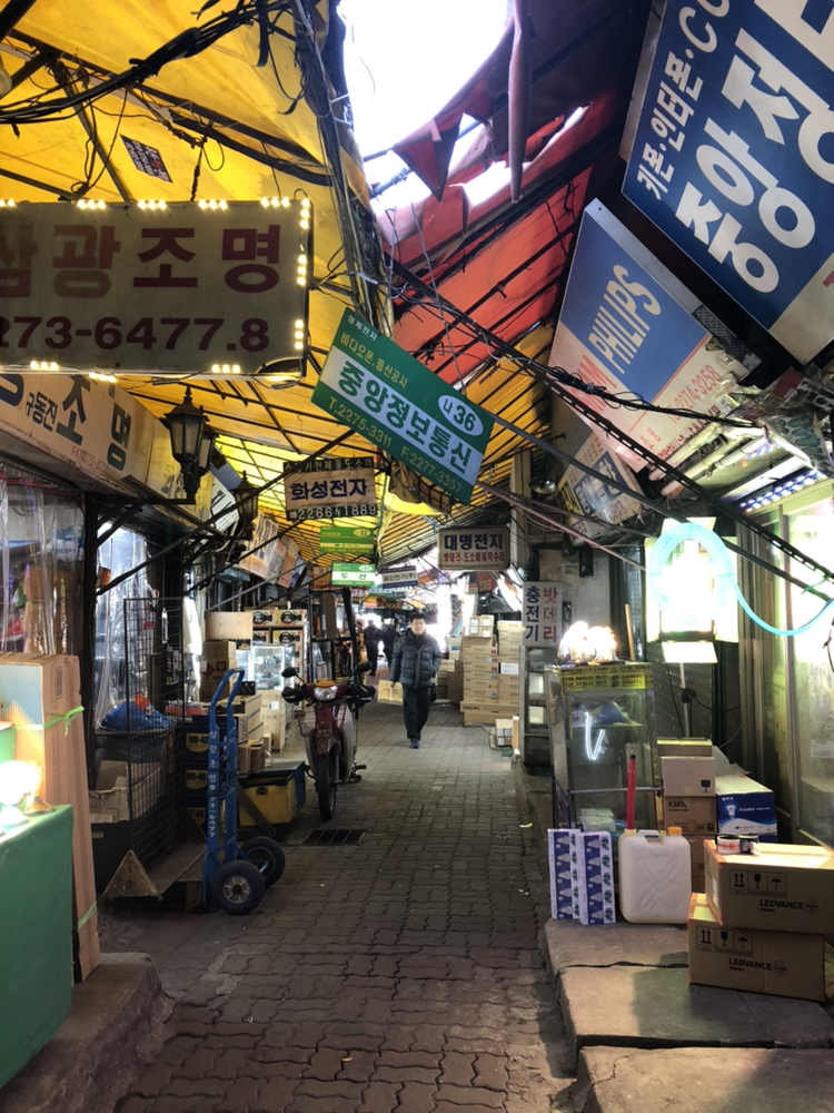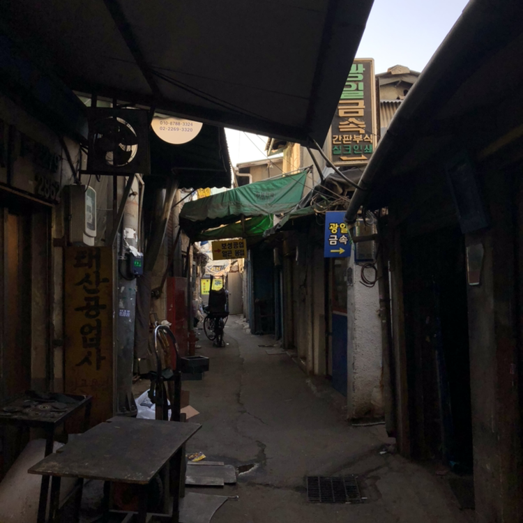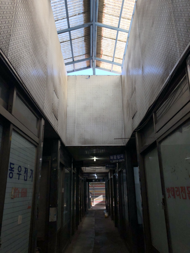 골목골목은 과거라는 타이틀이 어울린다. 좁은 골목과 황폐한 듯한 공간, 녹이 슨 장비에, 때가 탄 바닥. 정리되어 있지 않은 창고형 매장에, 길에는 지붕이 덮여 빛이 잘 들지 않는 골목. 전선은 곶자왈의 잡초처럼 도시정글을 이루고, 점포들은 은밀하게 숨어버리려는 듯, 다닥다닥 붙어져 있다.