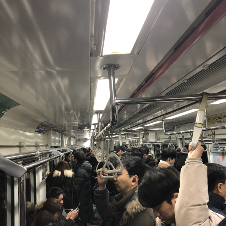 서울의 지하철 좌석에 앉은 승객들의 어깨와 옷은 그렇게도 맞닿아 있는데, 그 모습은 마치 어딘가로 실려가고 있는 듯하다.