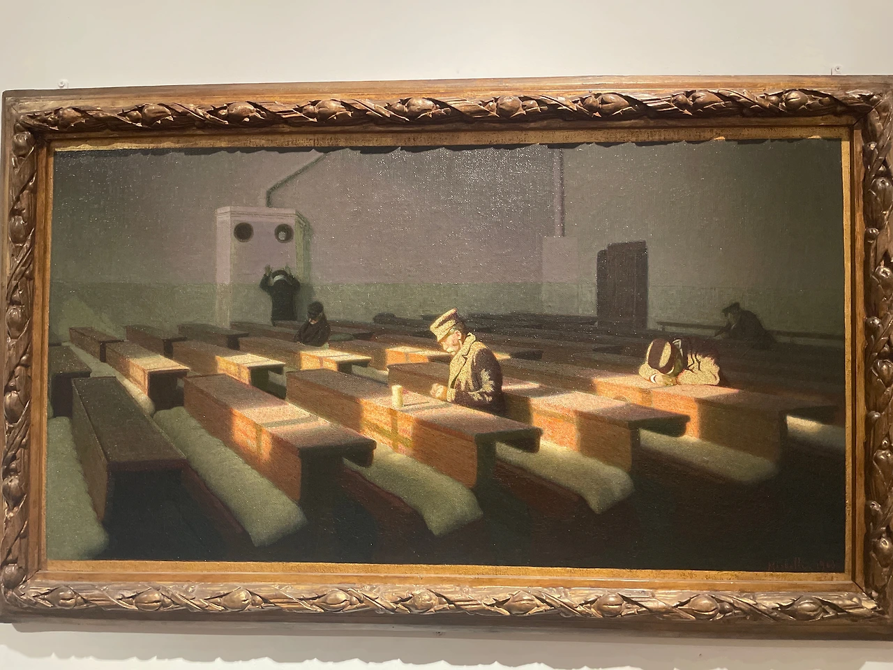감옥이나 정신병원을 연상시키는 작품, 공공 보호시설 같은 공간을 표현한 작품들이 보였다