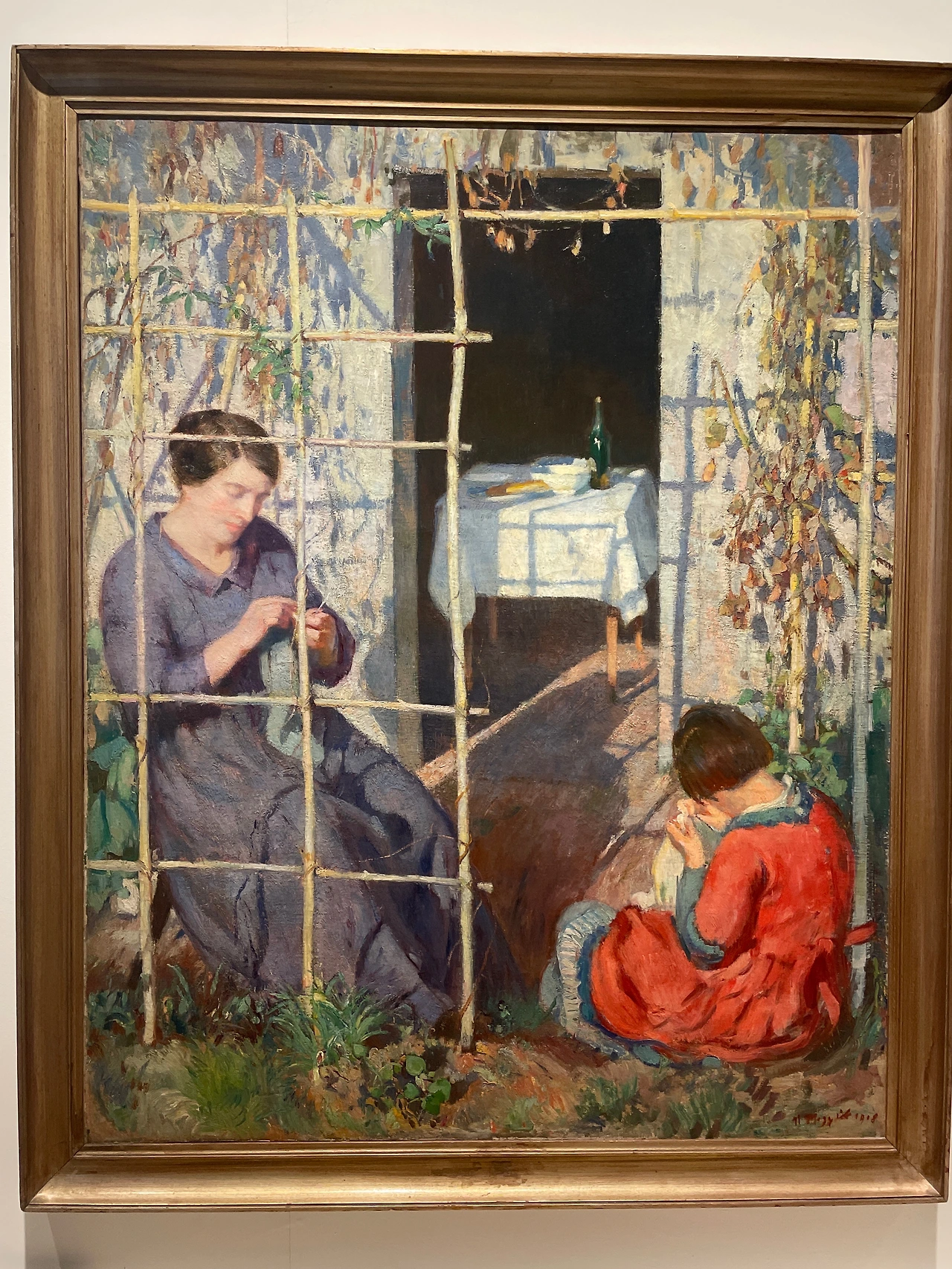 보기에는 바느질하는 여성과 그녀의 딸로 보이는 두 사람이 있는 평화로운 작품이었다
