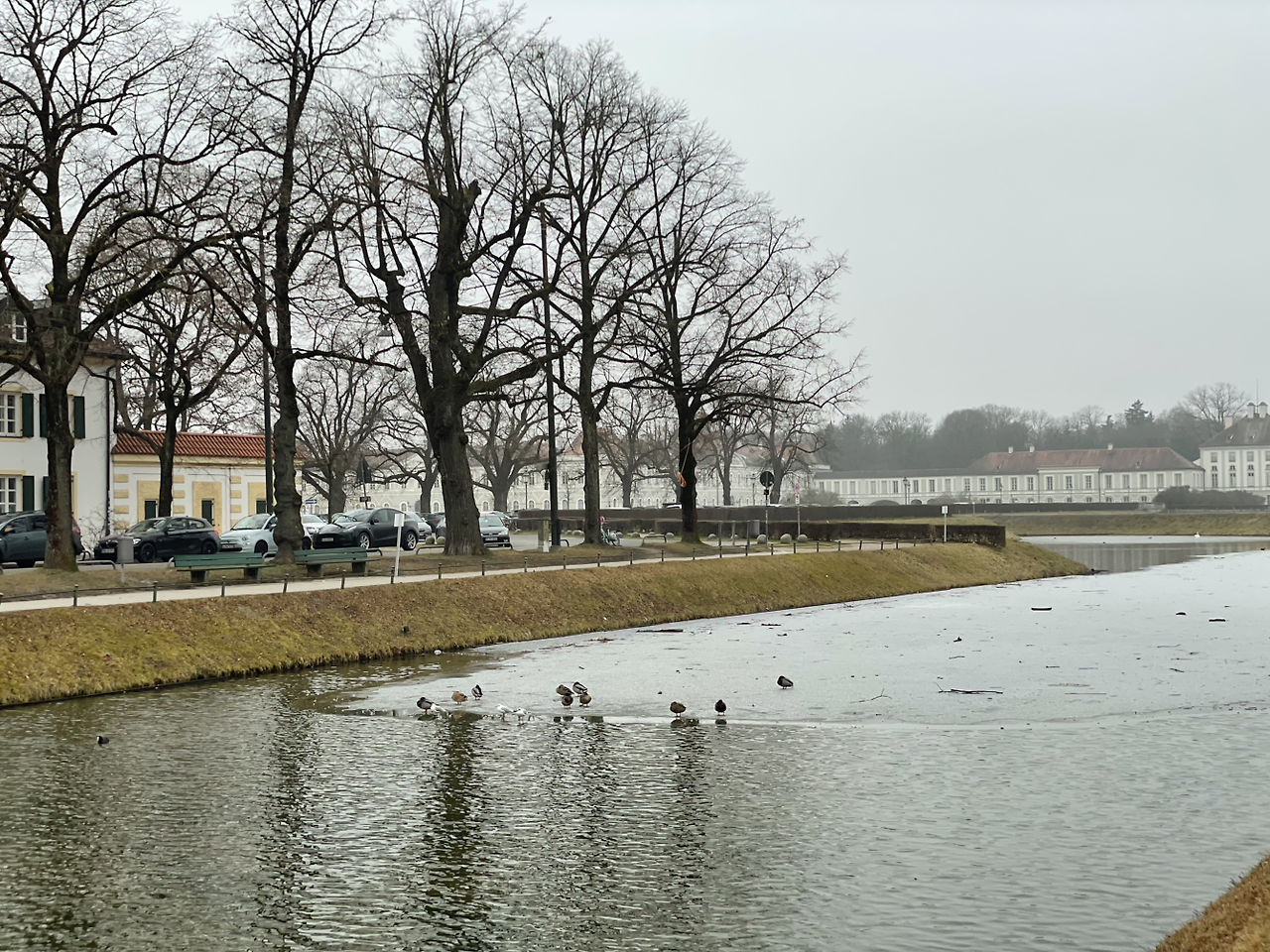 저 앞쪽의 한 부분은 얼어있었는데 그 얼음 위로 오리들이 올라와서 쉬고 있었다