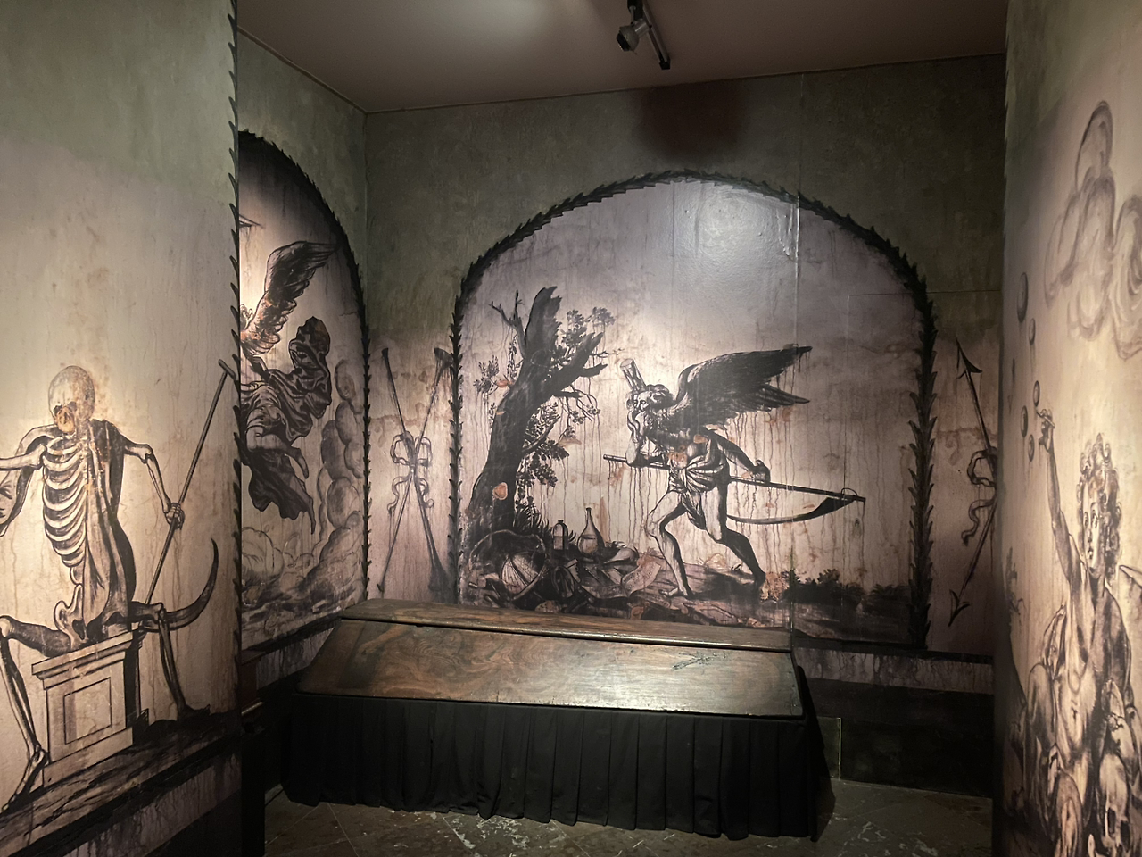그중 어두운 곳에 해골 그림과 관을 가져다 놓은 곳이 꽤나 인상적이었다