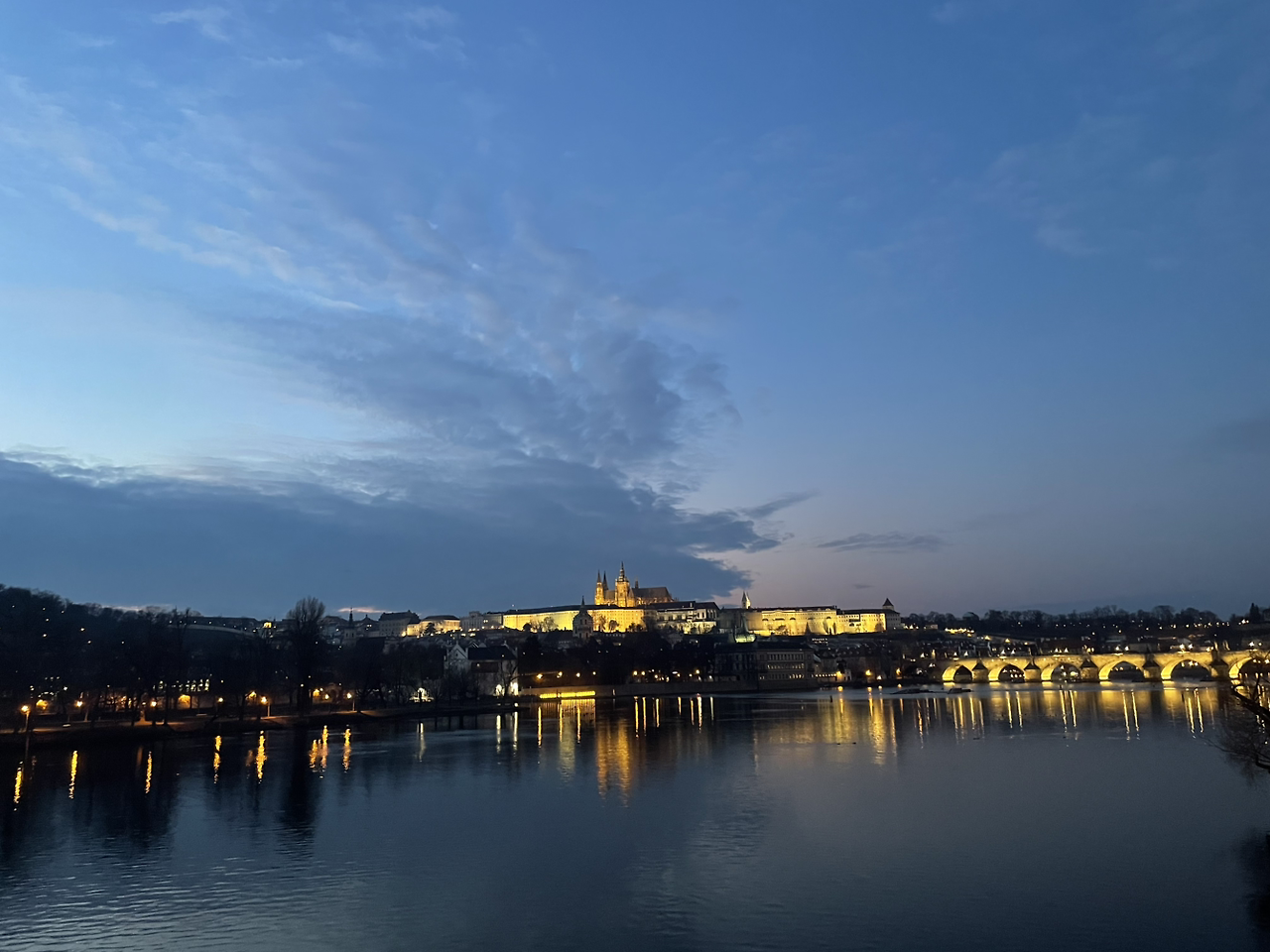 가는 길에 블타바 강을 보며 걸을 수 있었는데 어제 보았던 야경과 또 다른 느낌의 야경이었다