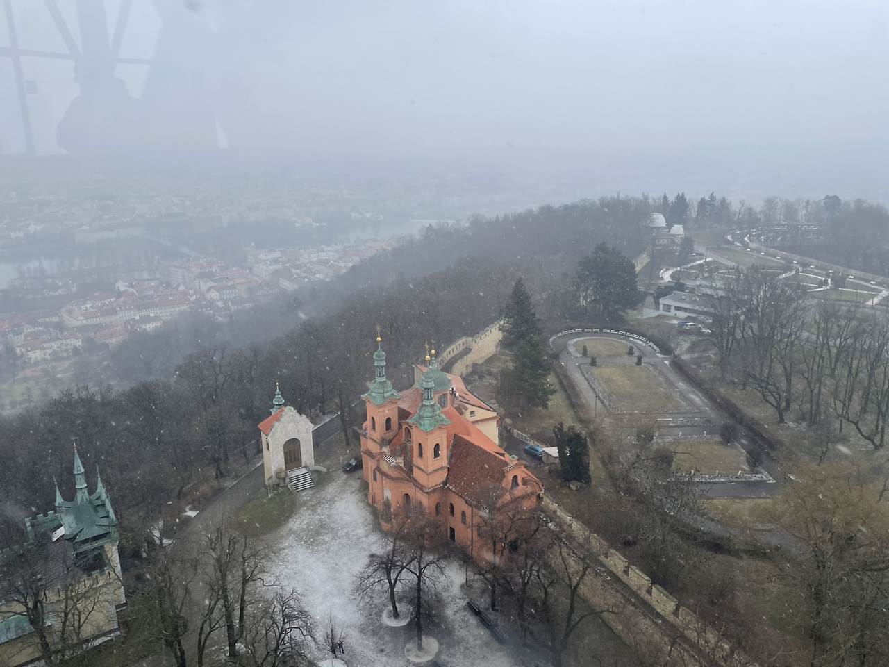 눈이 오는데 페트린 타워에 올라가는 게 맞나 싶다
