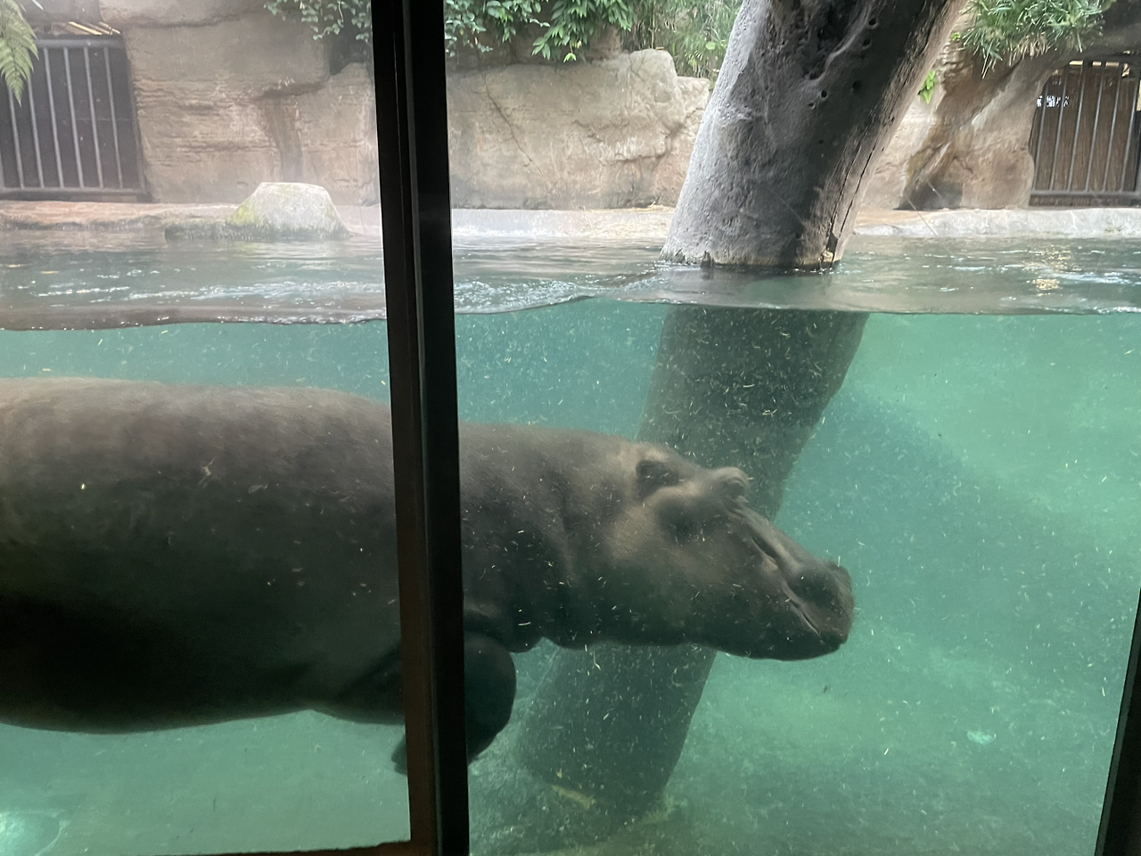 하마 두 마리가 있었는데 한 마리는 조용했고 한 친구는 계속 활발히 수영을 하고 있었다