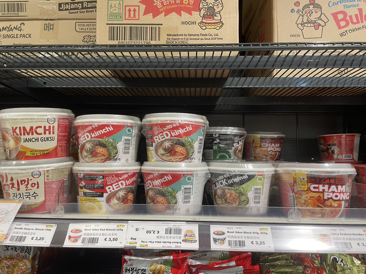 할인 품목이라 그래서 그런지 모르겠지만 신라면을 0.99유로에 현미 햇반을 1.37유로에 팔고 있었다