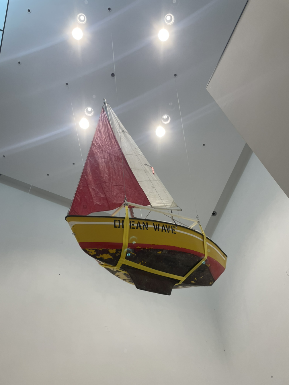 자유를 찾아 배로 사람들이 이동했지만 천장에 매달려 있는 모습을 통해 목적지에 도달하지 못하고 중간 어딘가에 떠있는 상태를 표현한 것이란다