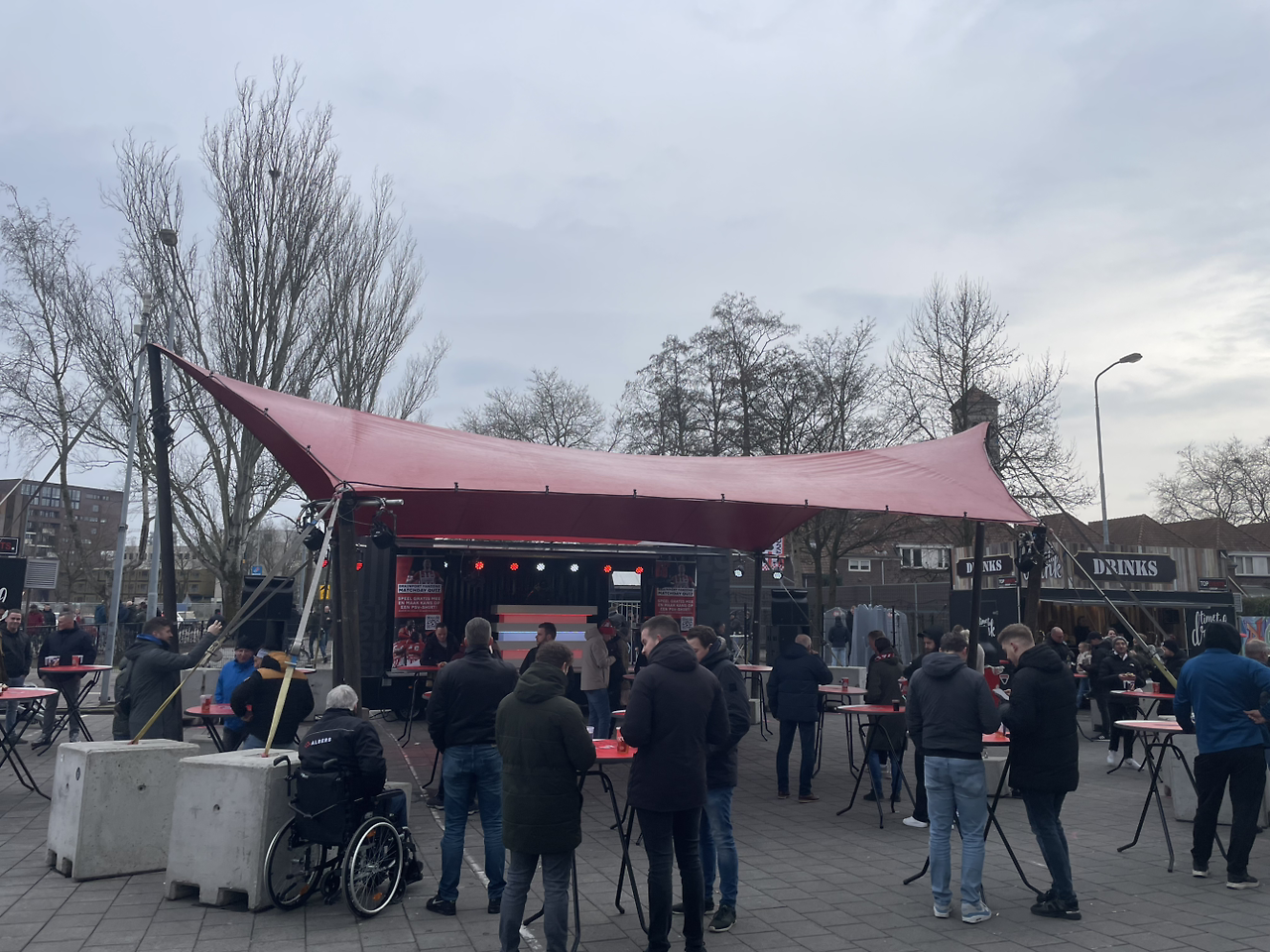 축구장 근처에 도착을 하니 축구장을 둘러싸고 맥주를 팔고 있었다