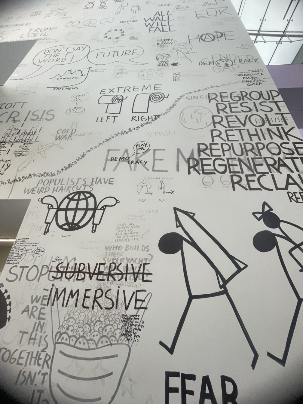 “Fascism(파시즘)”, “Freedom(자유)”, “Fear(공포)“, “FAKE NEWS(가짜 뉴스)” 가 있단다