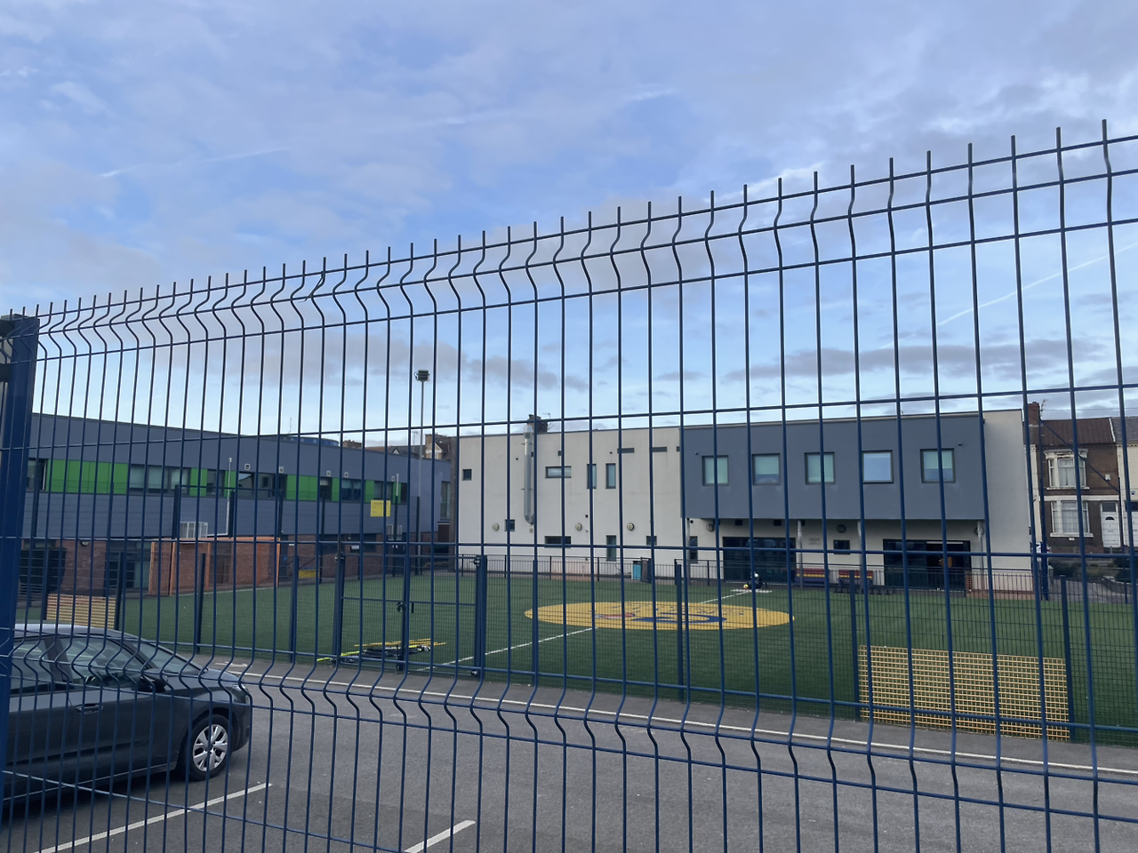 조그마한 풋살장 하나가 있고 에버튼 로고에 스쿨 뭐시기 라고 써져 있었다