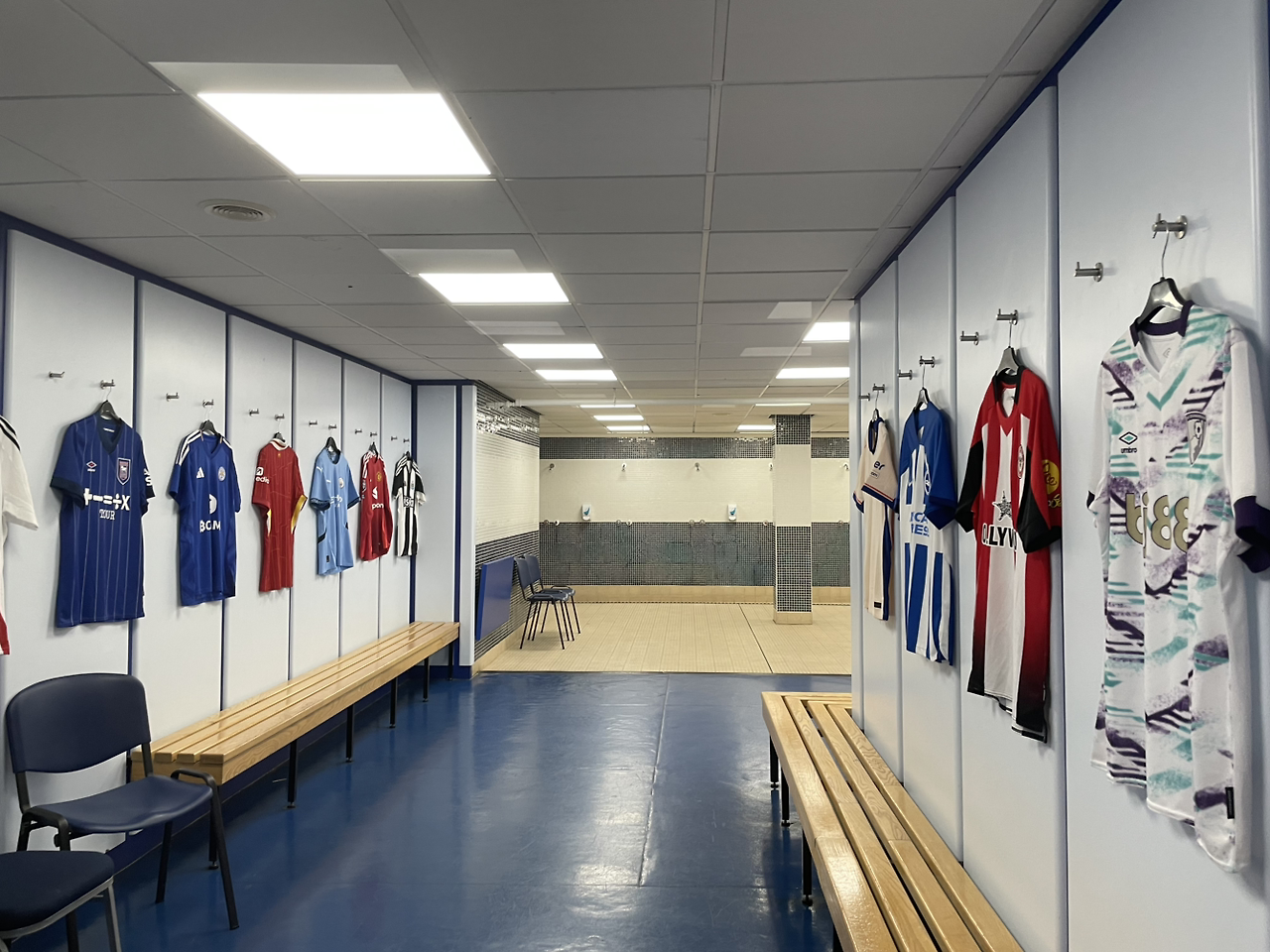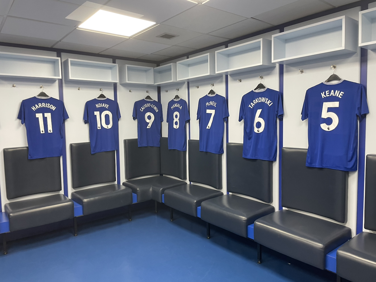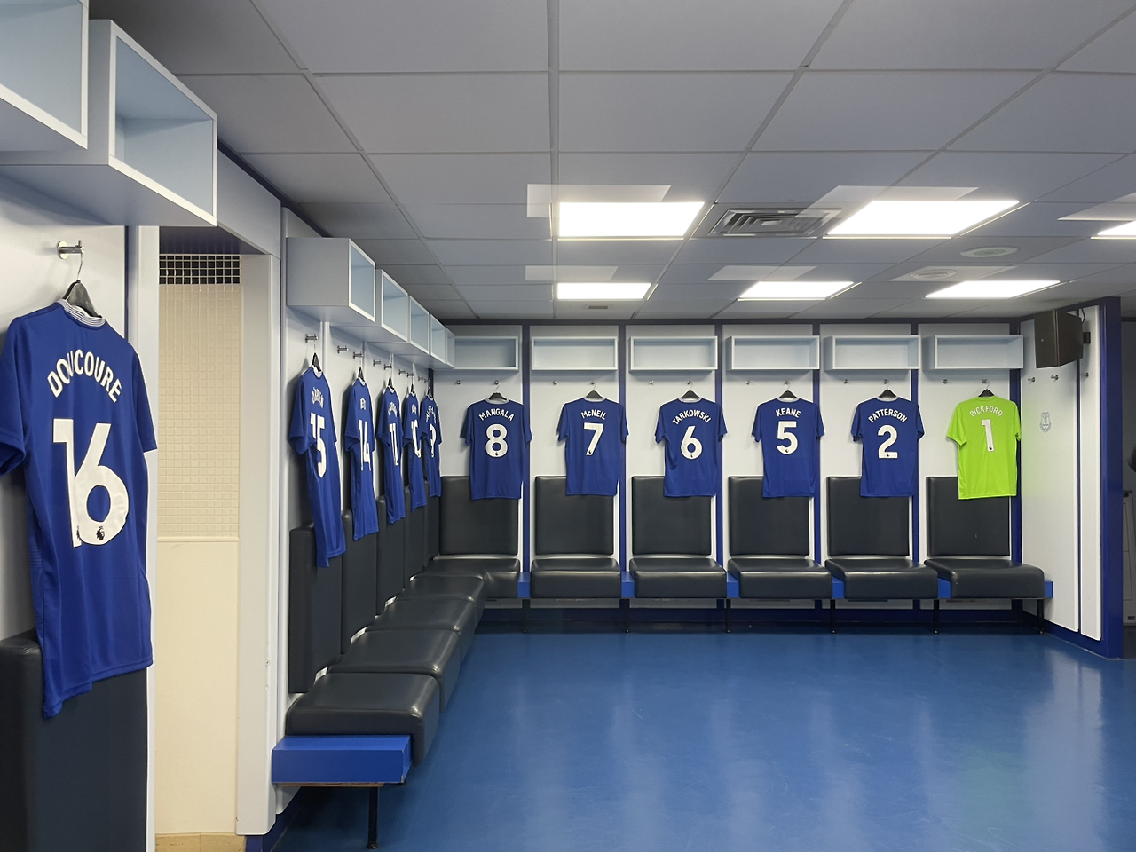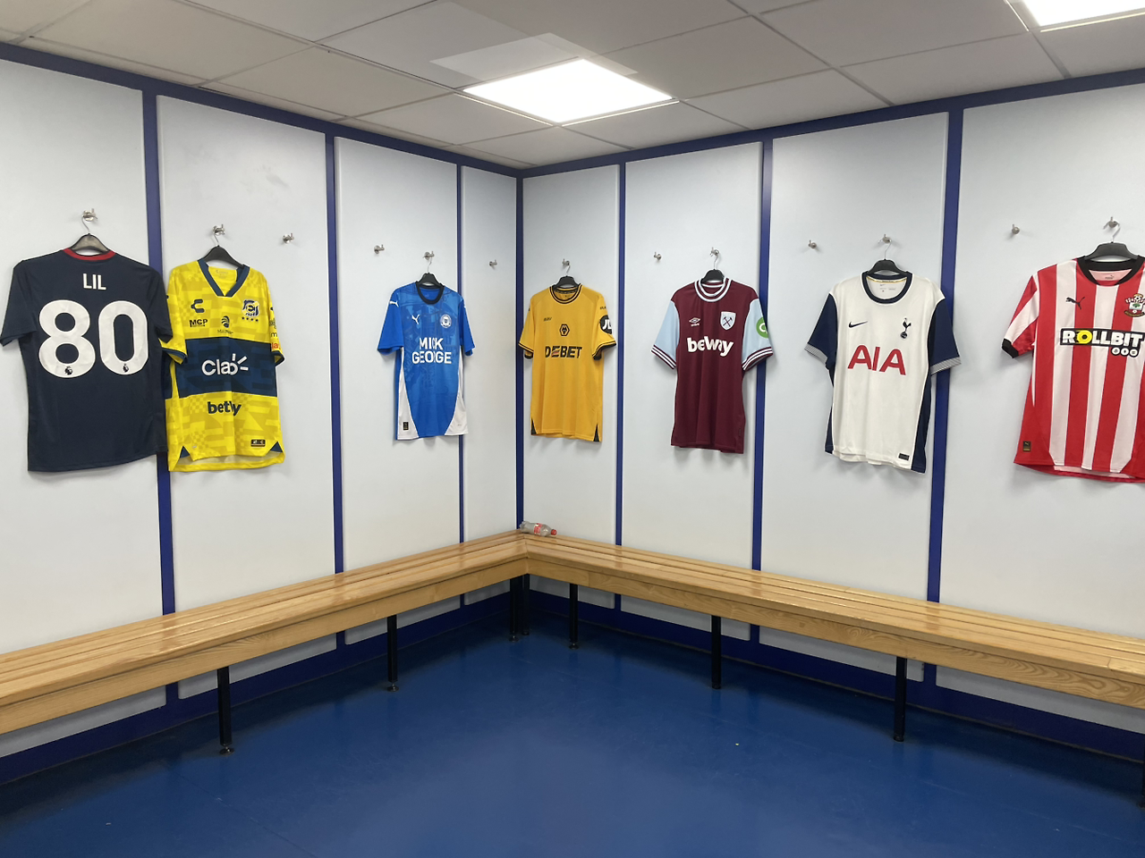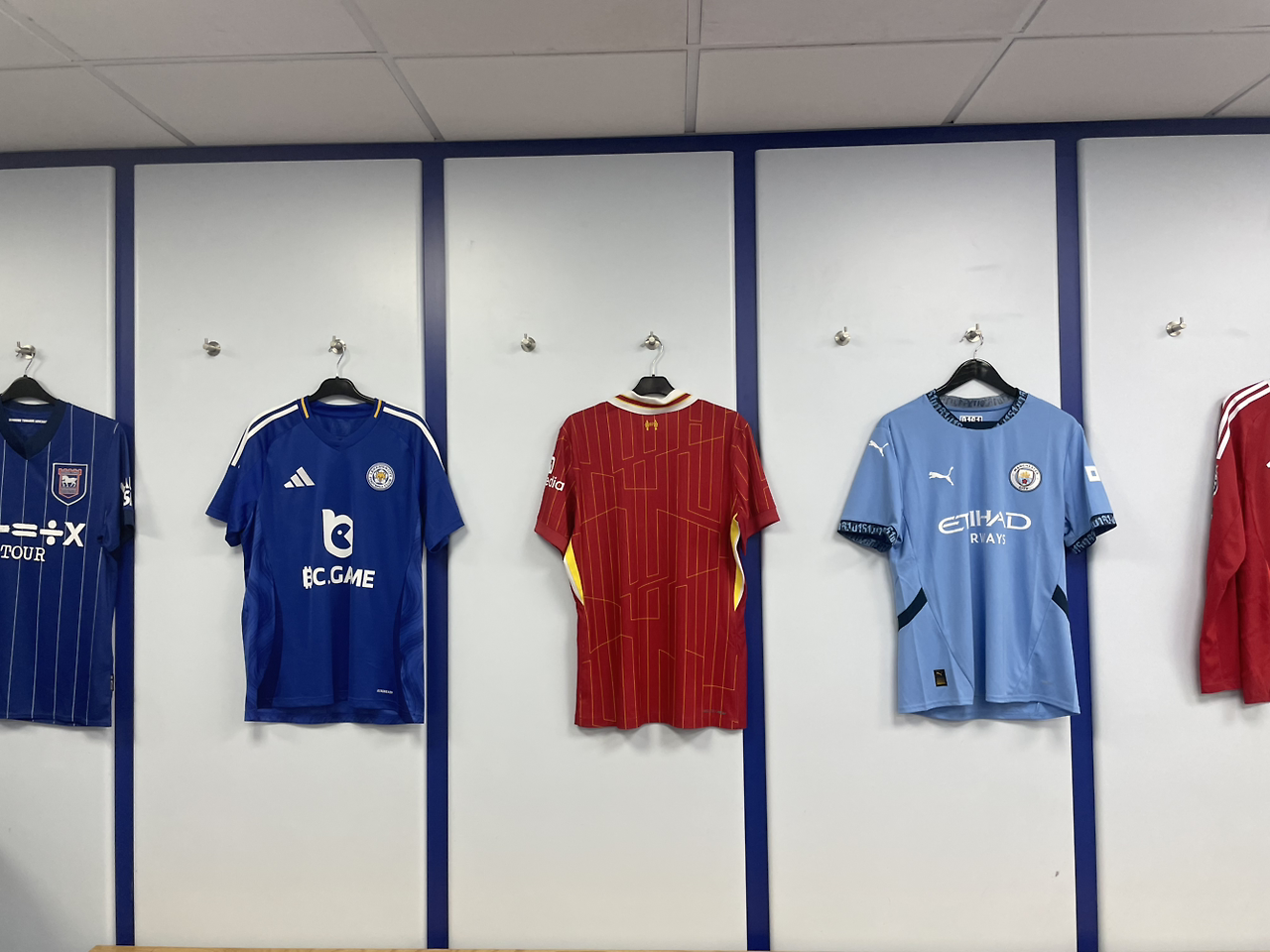 락커룸의 옷걸이에는 프리미어리그 팀들의 유니폼이 걸려 있었다