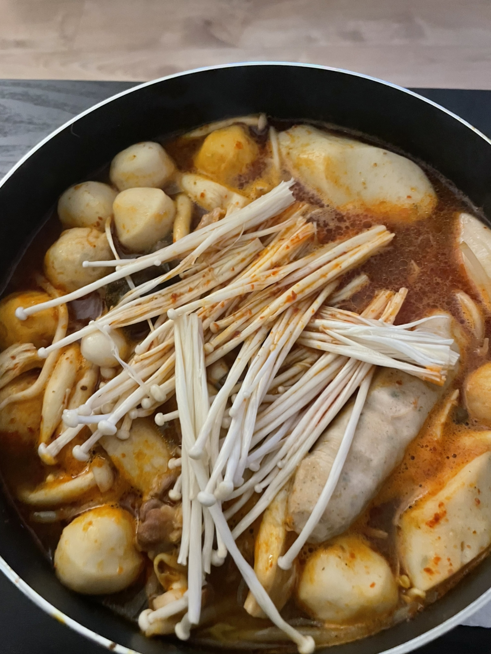 오늘은 마라탕 비슷한 것이 먹고 싶어서 소스와 어묵 그리고 버섯과 샤부샤부용 소고기를 사 왔다