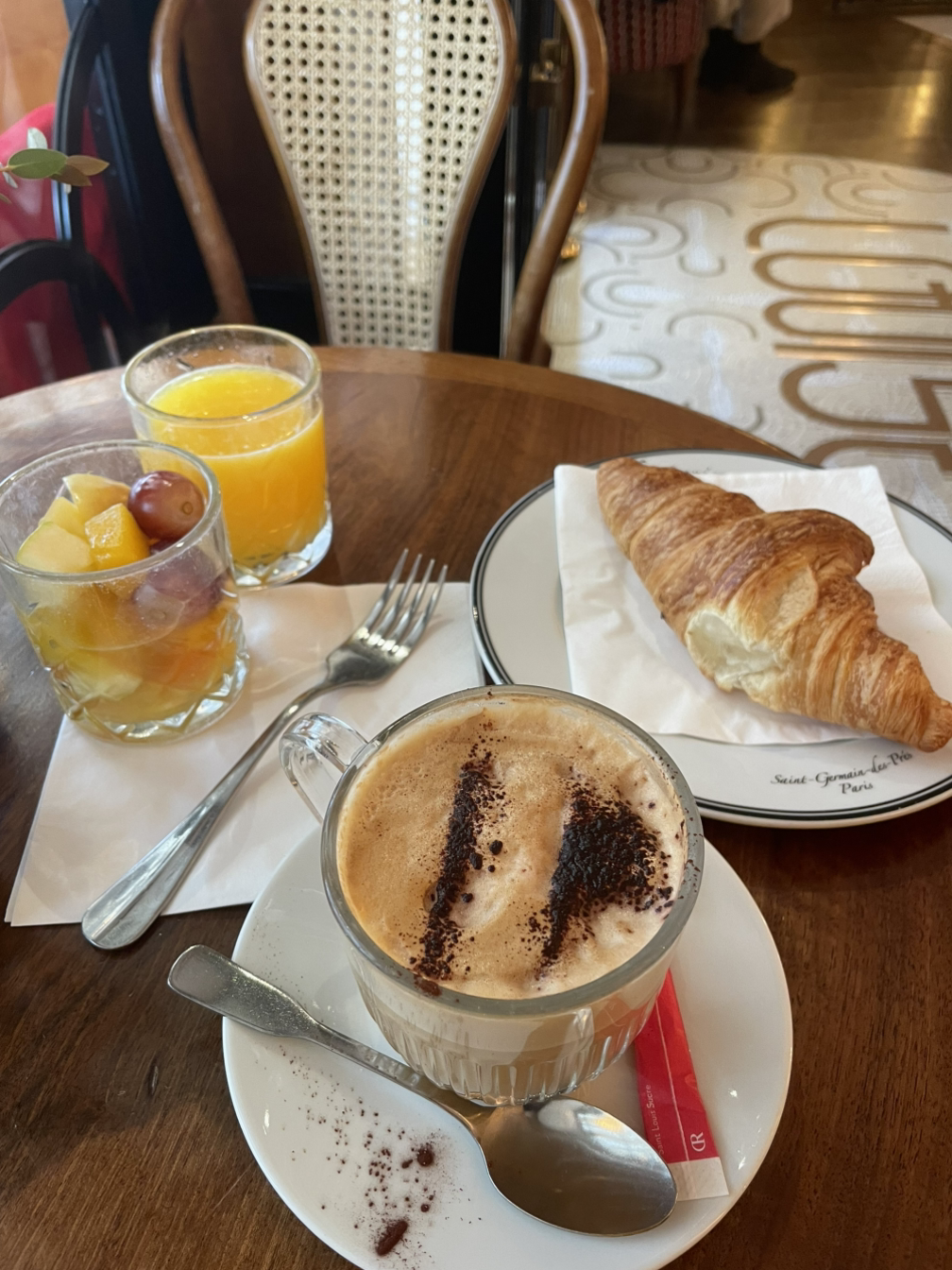 크로와상 하나와 커피 한잔 과일 화채와 주스 한잔을 먹을 수 있었다