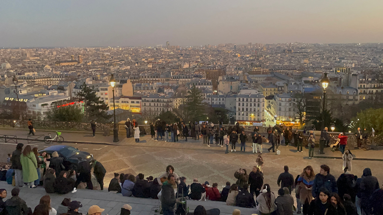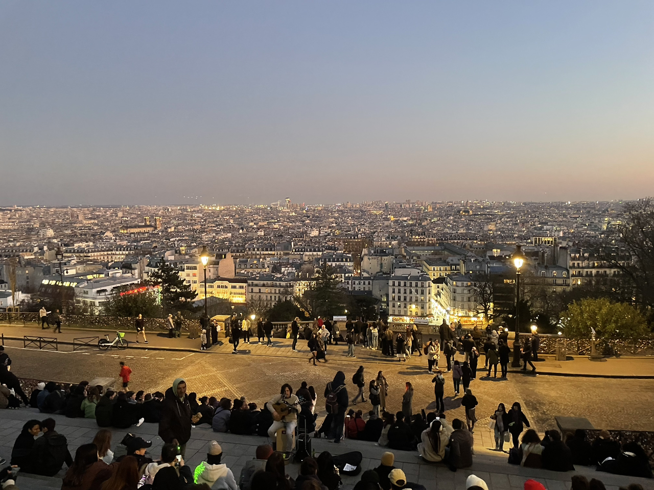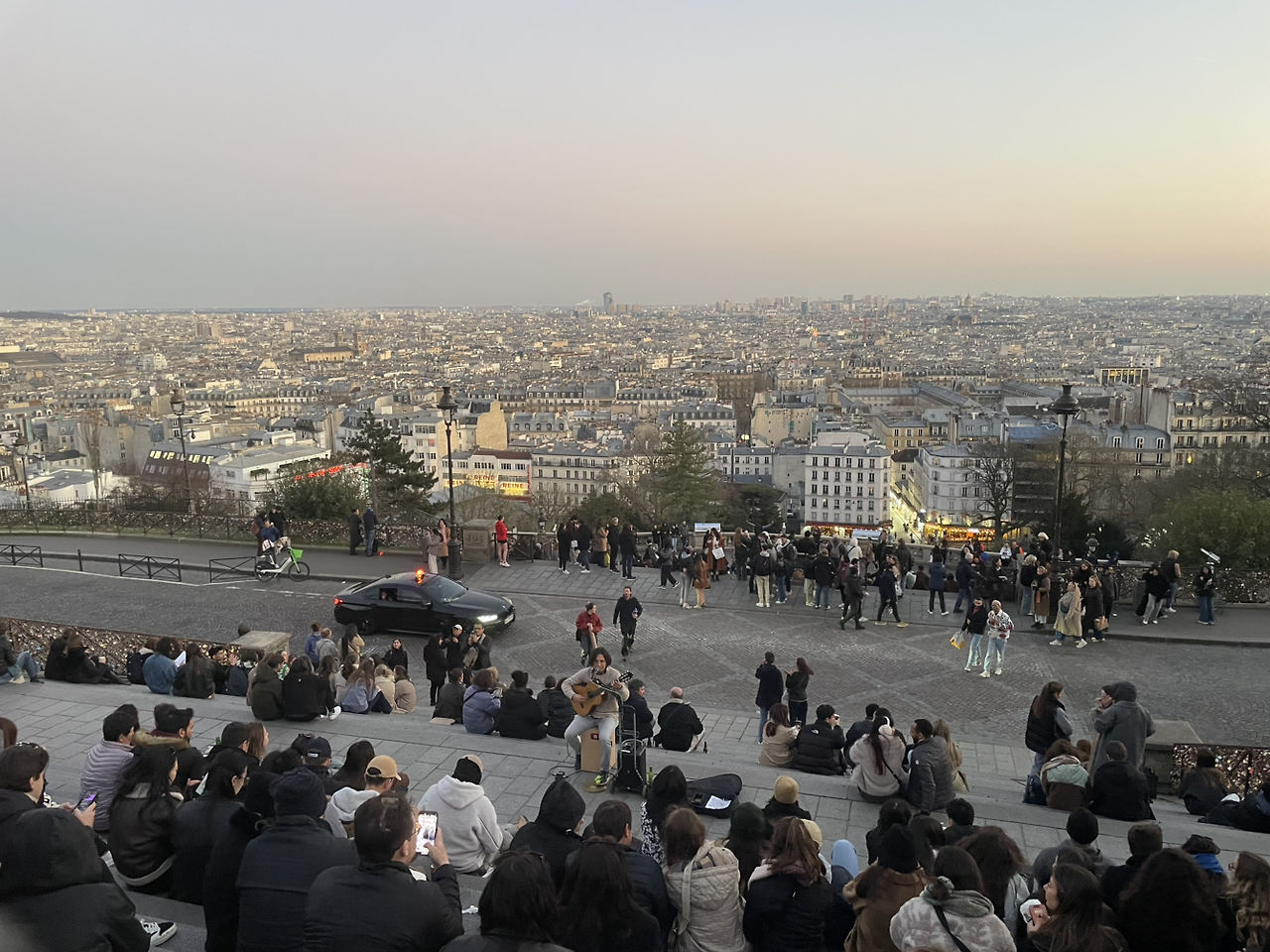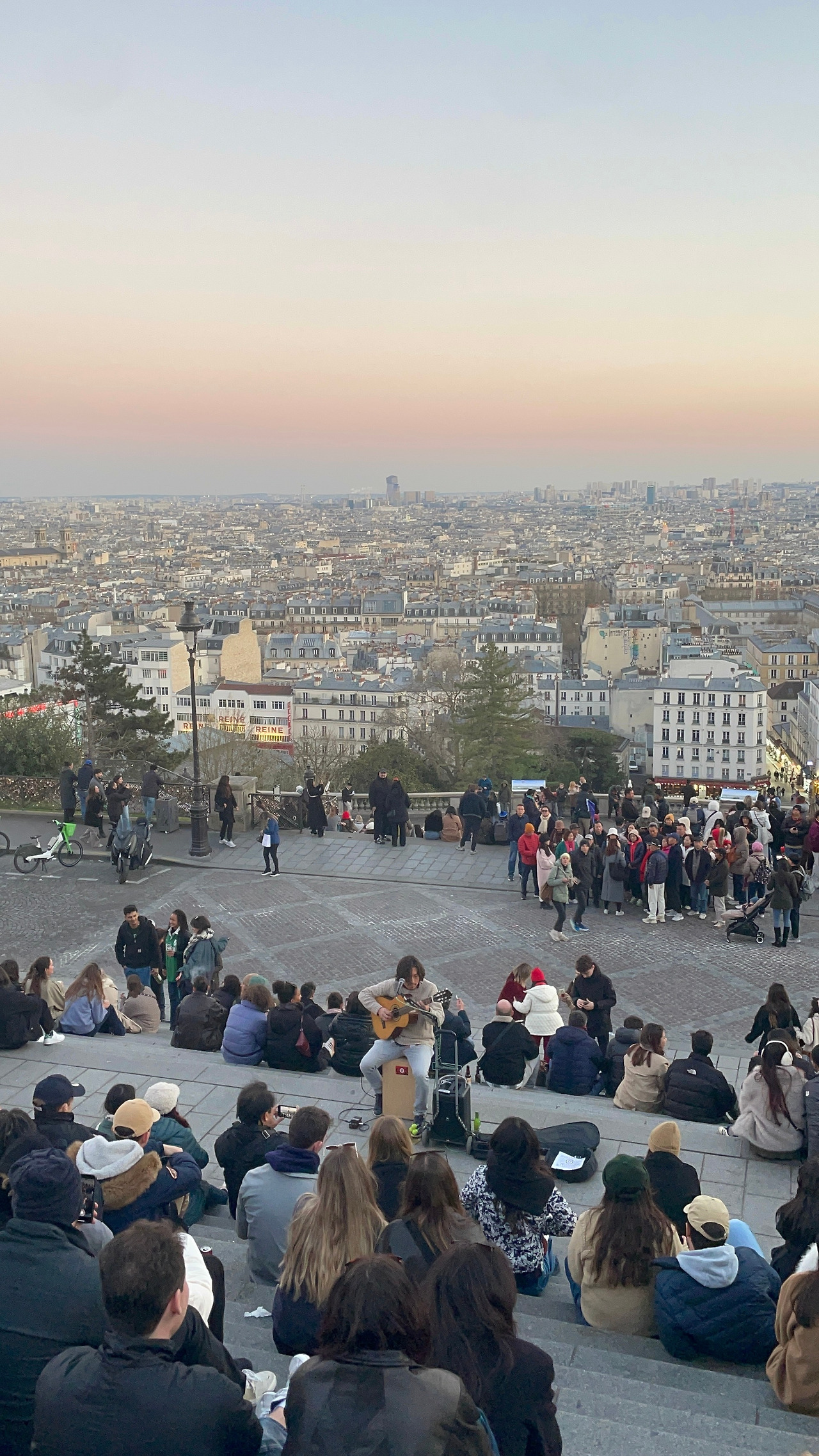 계단 위에서 풍경을 바라보는데 계단 아래에서 길거리 연주를 시작했다