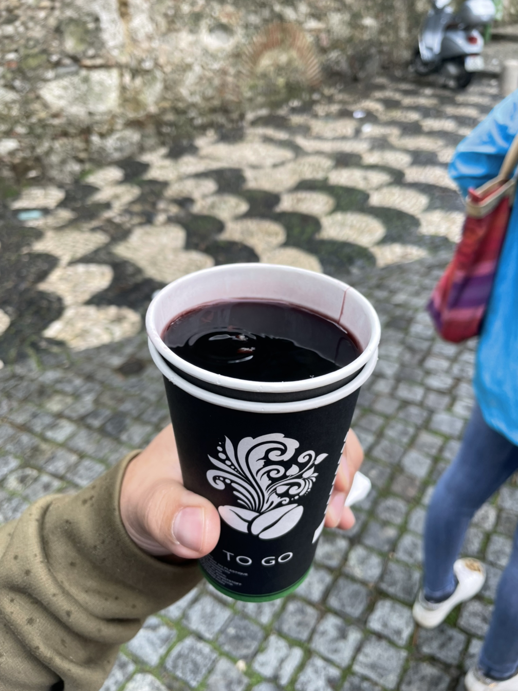 우비를 조심히 챙겨 입고 비를 맞으며 샹그리아를 마셔본다