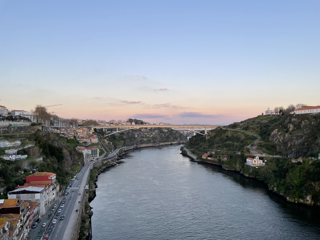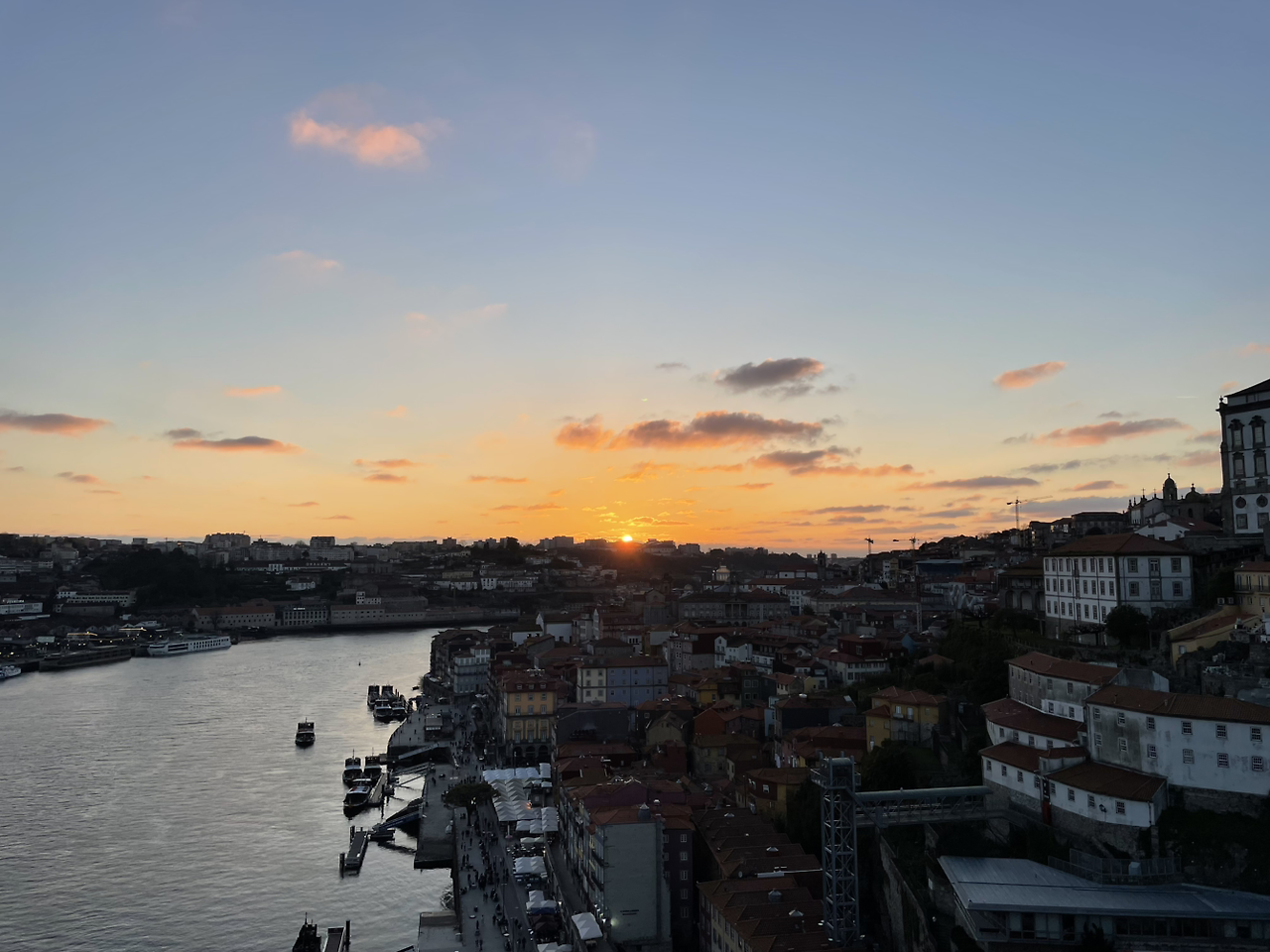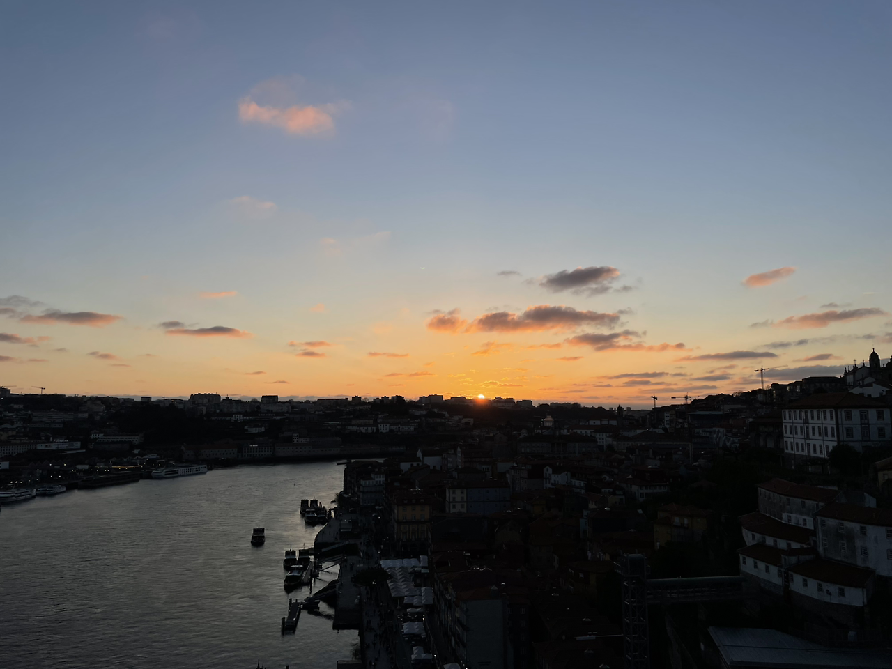 도루강을 가로지르는 루이스 1세 다리의 윗부분에서 석양을 보고 싶었다