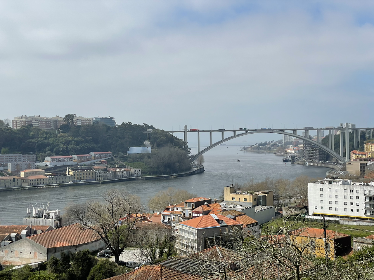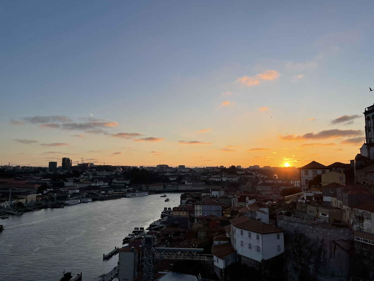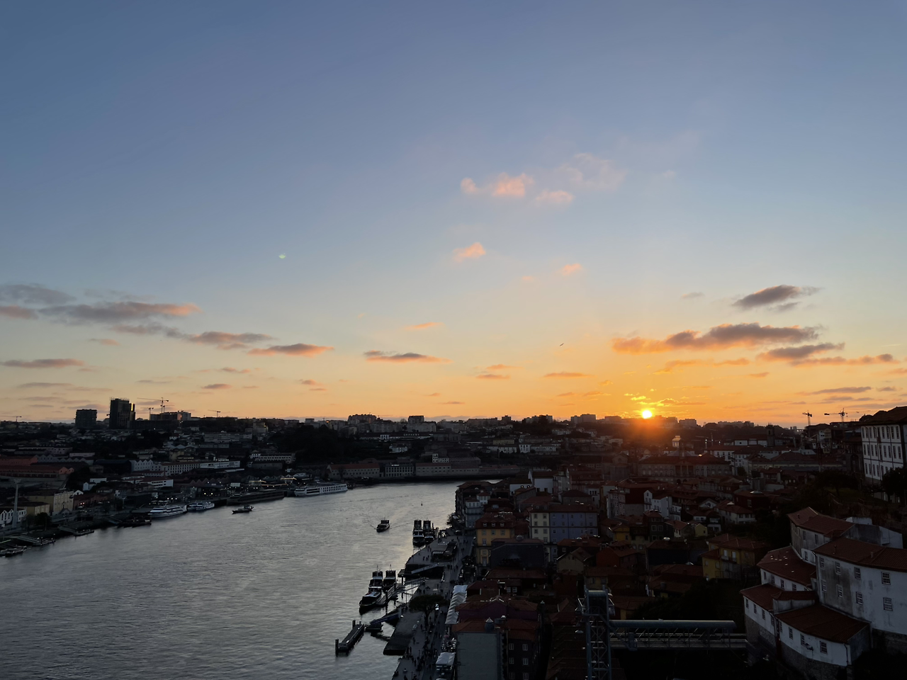 도루강을 가로지르는 루이스 1세 다리의 윗부분에서 석양을 보고 싶었다