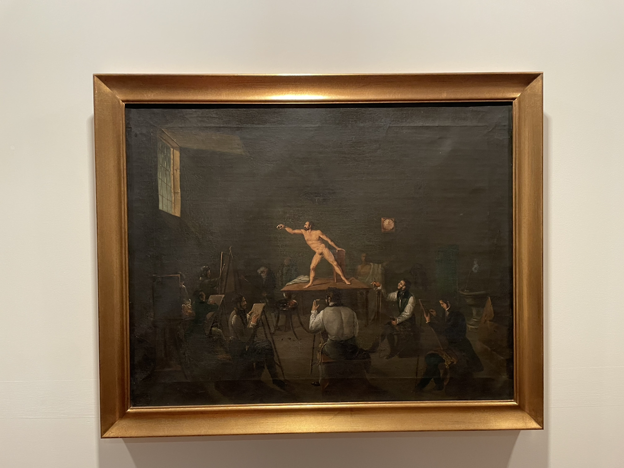 가장 먼저 눈에 들어온 작품은 도밍고스 페레이라 드 카르발류(Domingos Pereira de Carvalho), 별칭 로마인(O Romano)이 그린 Atelier de pintura (Painting Workshop), 즉 회화 작업실이었다