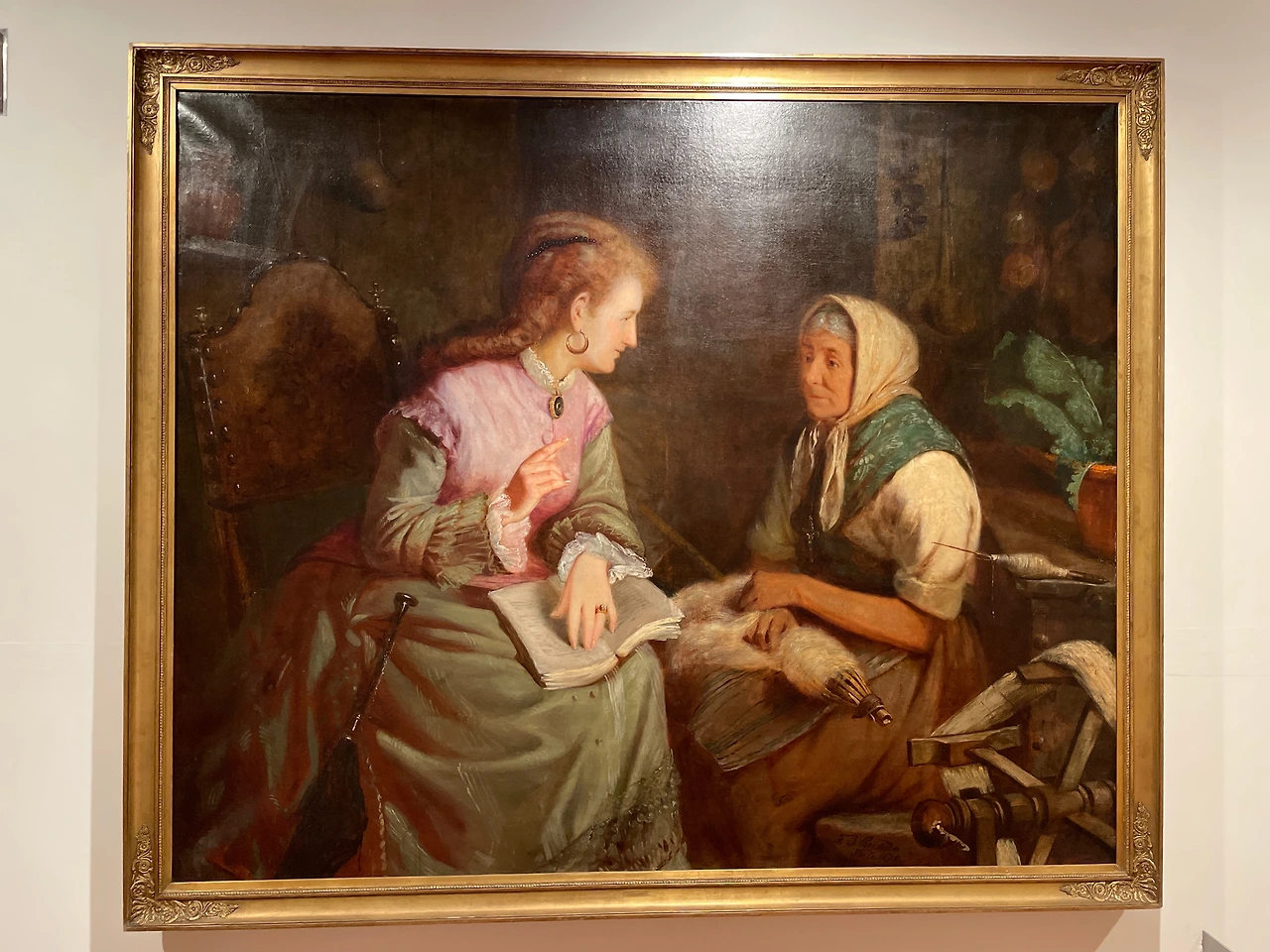 실과 바늘을 들고 있는 어르신과 책을 들고 있는 여성의 모습이 대비가 되었다