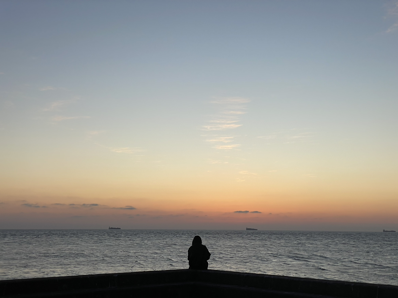 구름이 한 점도 없다고 해야 할 만큼 깨끗한 하늘을 배경으로 해가 지는 것을 볼 수 있다는 건 행운이라고 생각이 든다