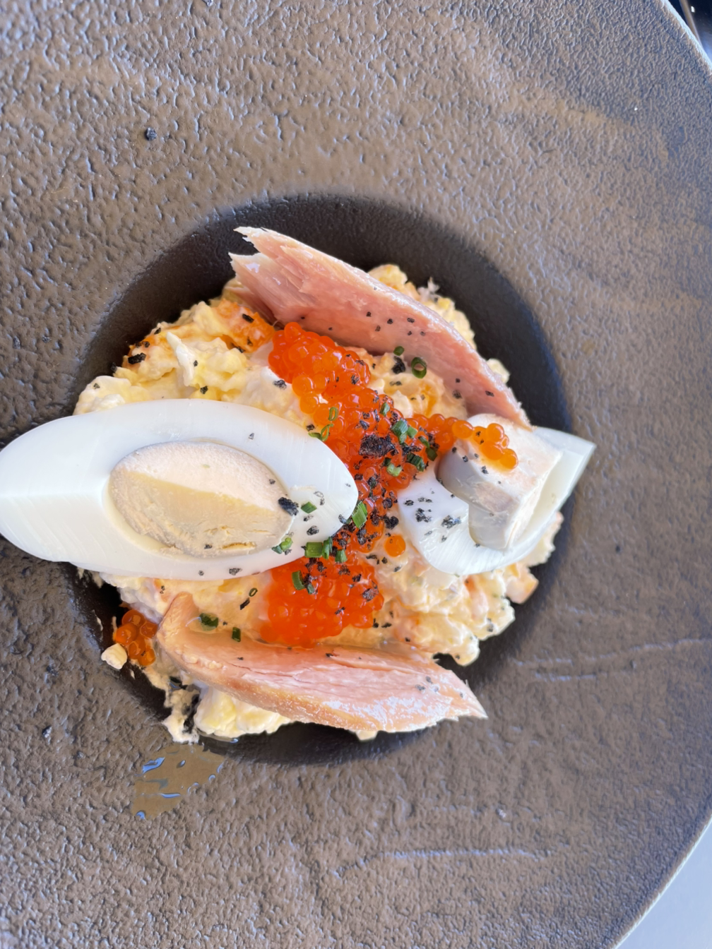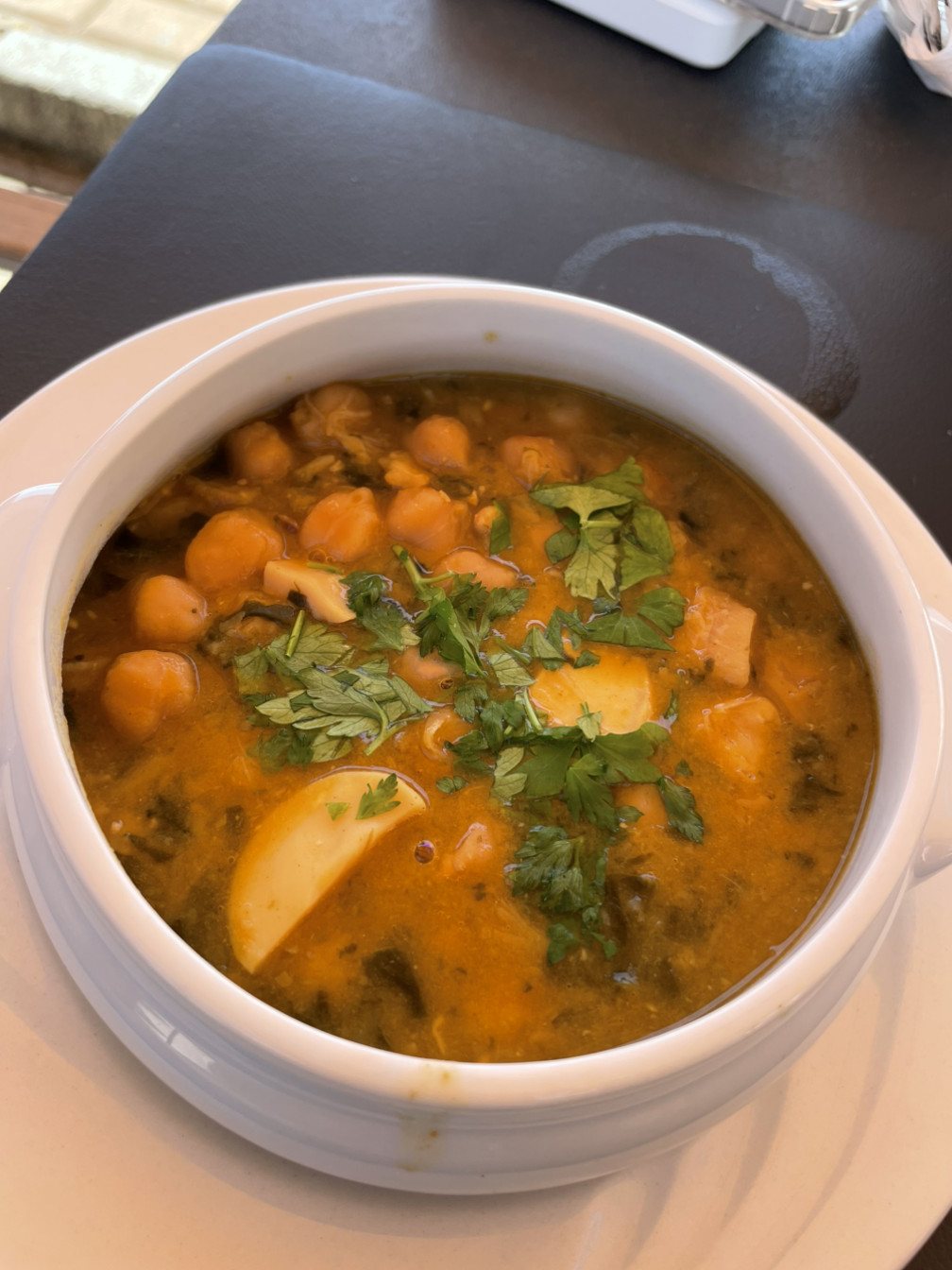 첫 번째 디쉬로 참치 뱃살이 올라간 러시아식 감자샐러드와 병아리콩과 대구로 만든 수프류 스튜를 먹었다