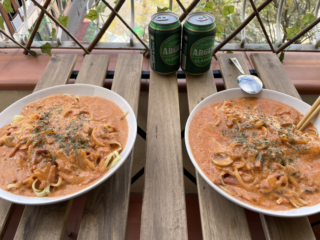 숙소로 온 김에 남은 재료를 싹싹 모아 스파게티를 해 먹었다