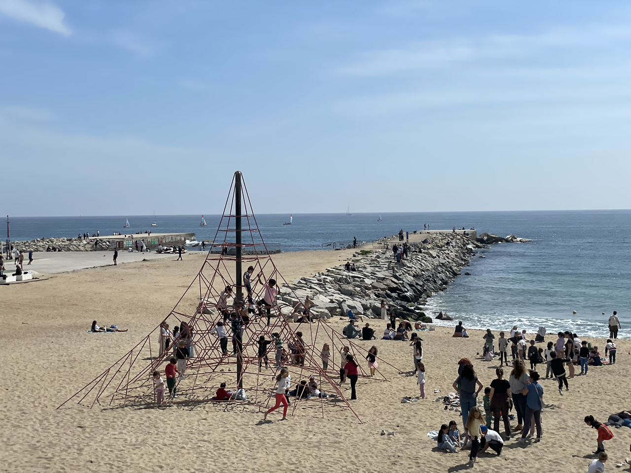 비치발리볼을 하기도 하고 아이들은 정글짐을 이용하며 놀고 있었다