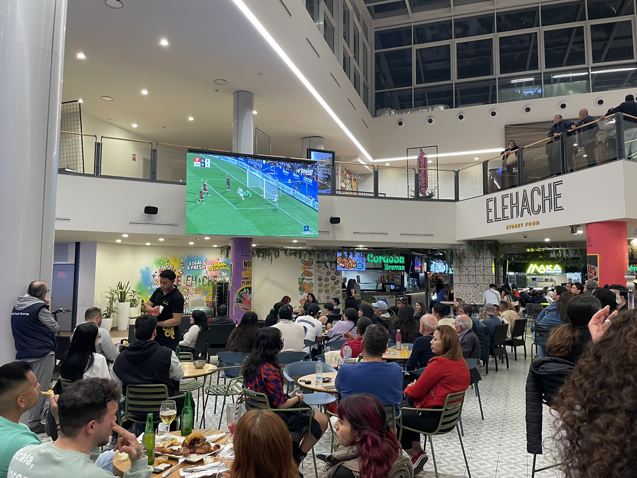 중앙 홀에는 큰 화면에 축구가 틀어져 있고 여기서 한잔들하며 축구를 보고 있었다