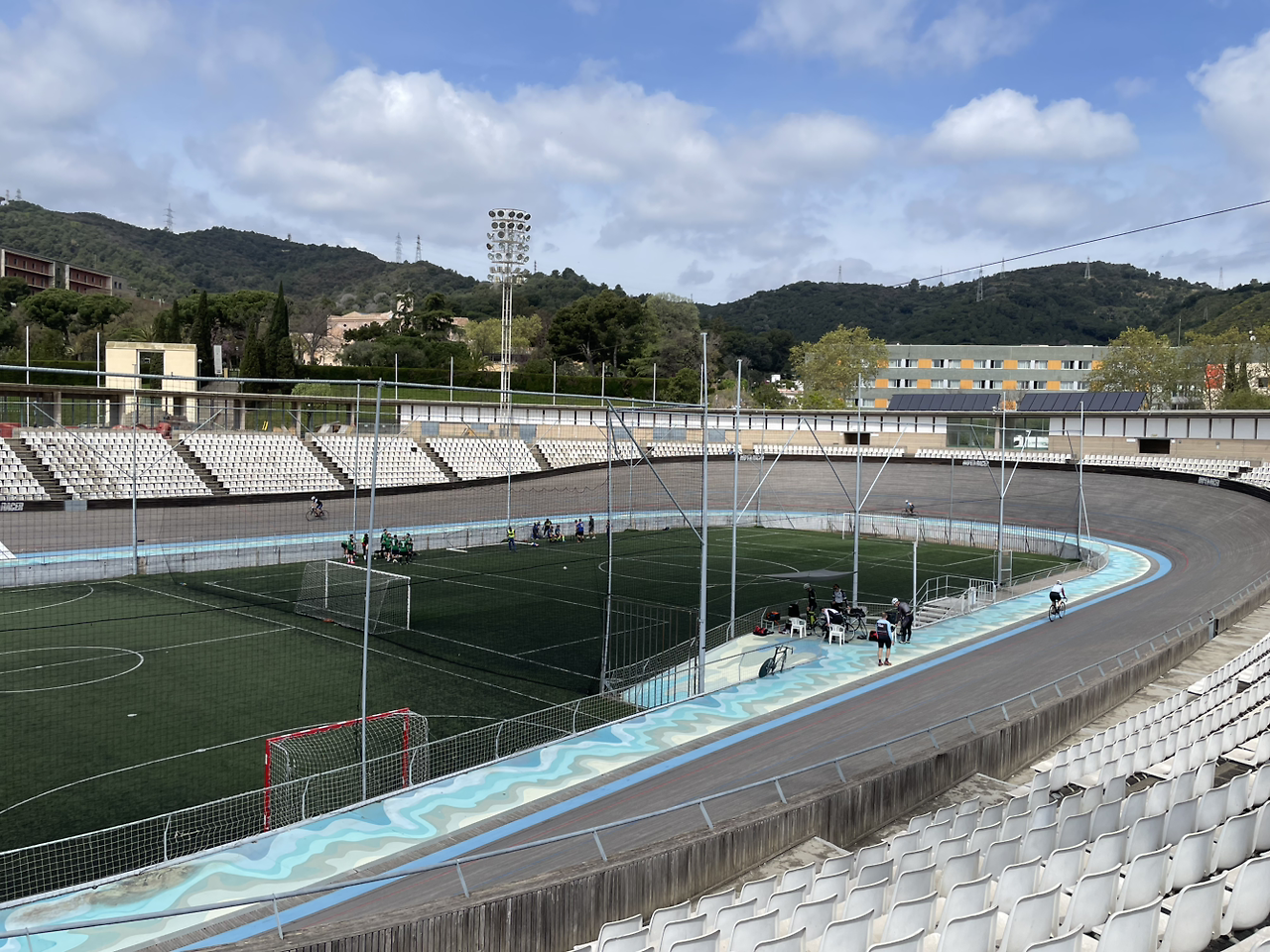 경기장의 가운데에는 풋살을 할 수 있게 되어있고 그 가에는 사이클을 탈 수 있는 트랙이 깔려 있었다