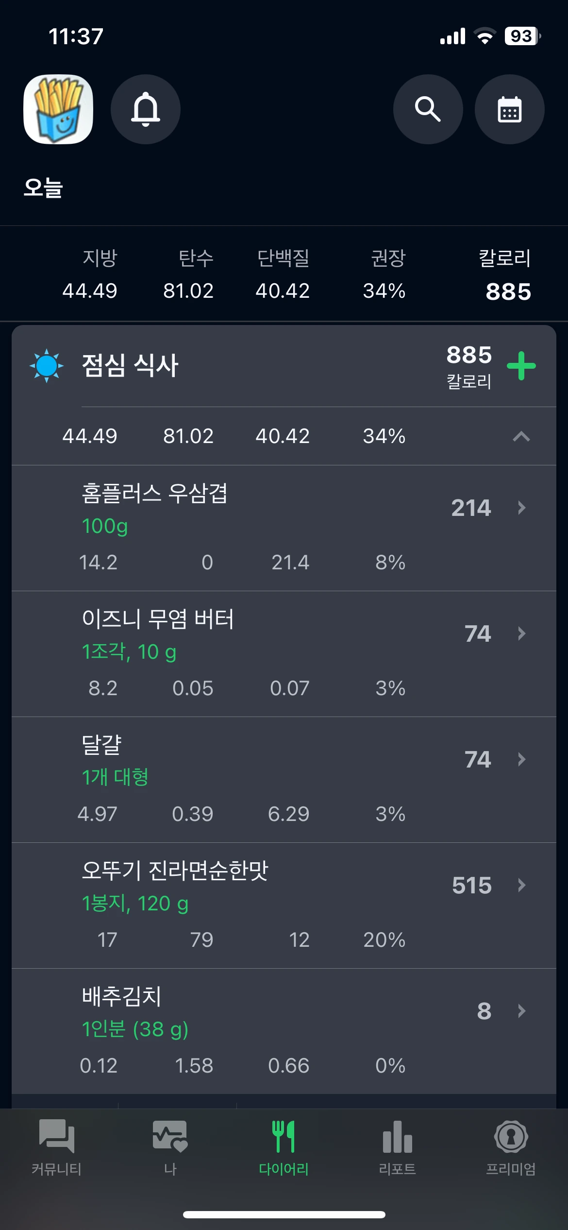 요즘 칼로리를 fatsecret이란 어플에 메모를 하고 있다