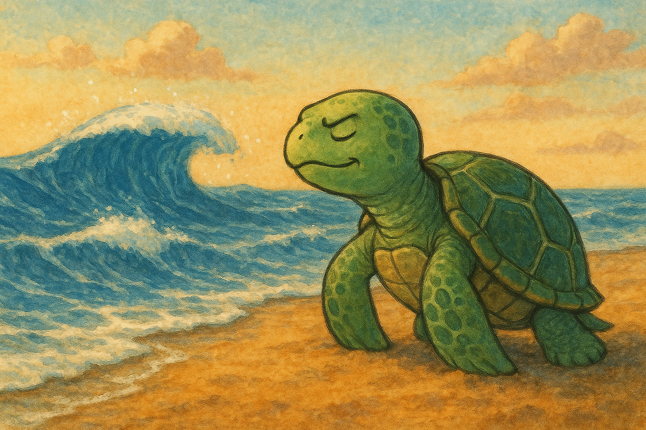 거북이도 파도 속으로 사라졌어요