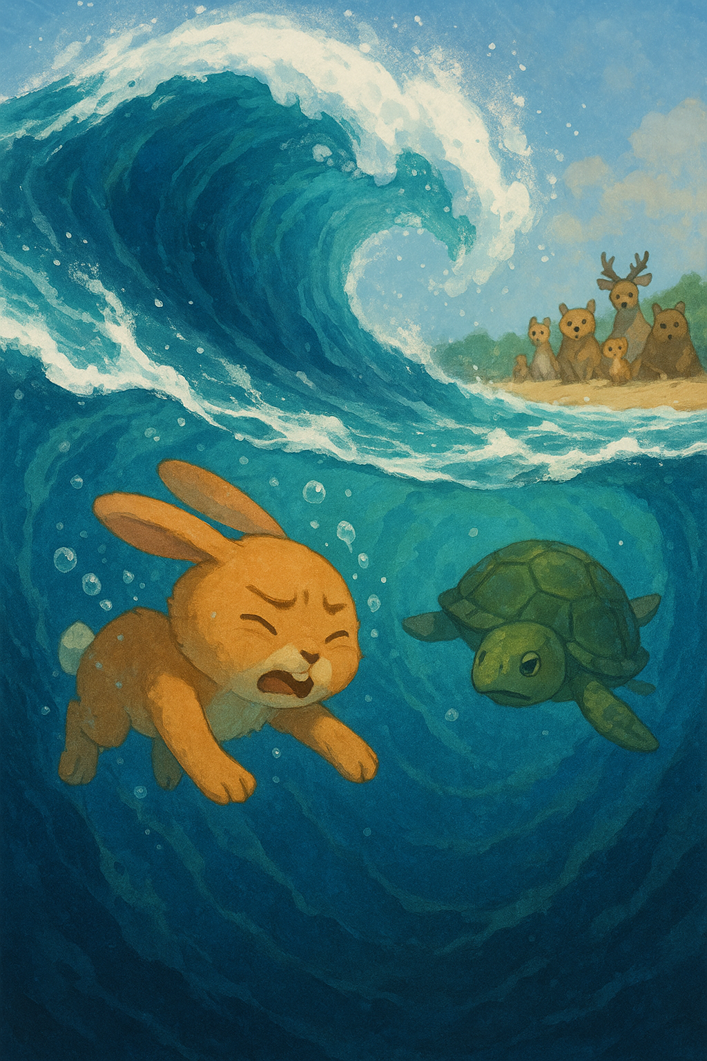 그때 갑자기 거대한 파도가 밀려왔어요!