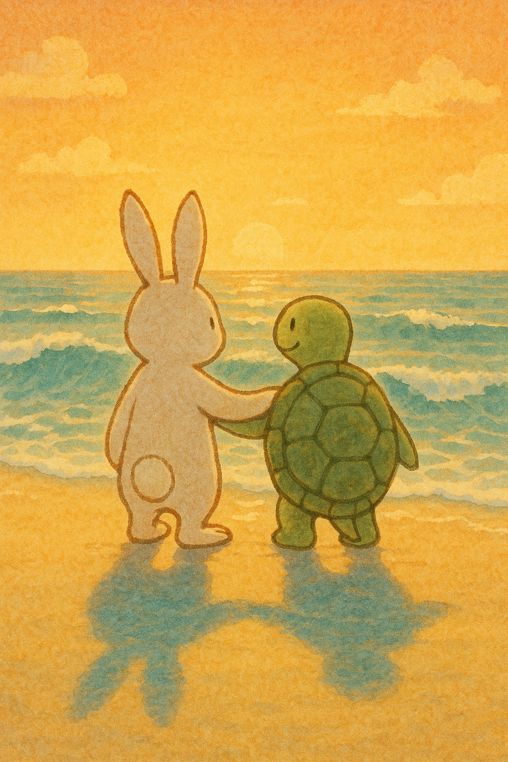 백사장 위엔 두 친구의 그림자가 나란히 비쳤어요