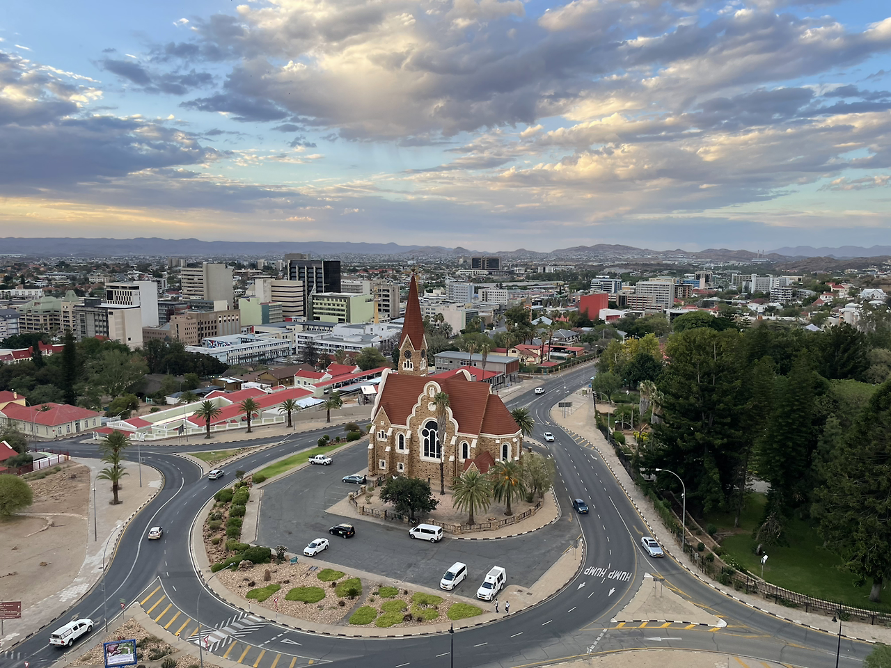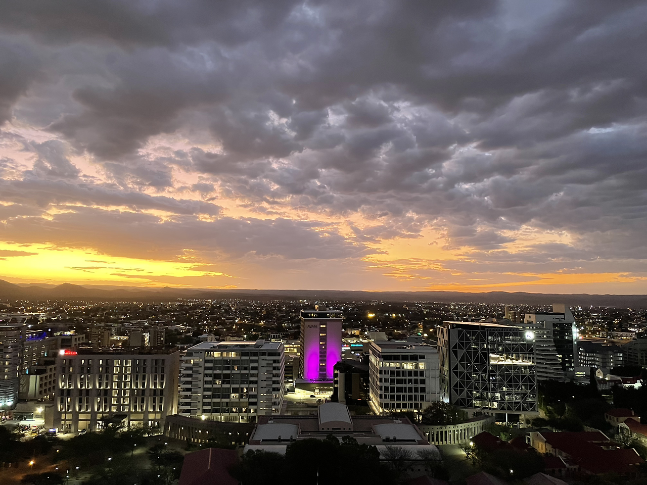 북한이 지었다는 건물 위 식당에서 노을을 기다리며