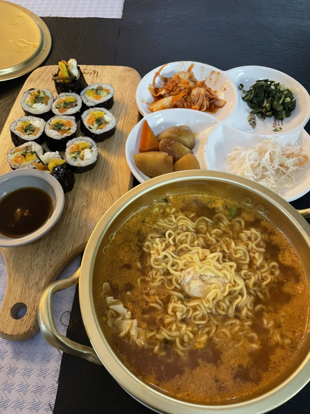 식당에서 라면에 김밥을 주문했다