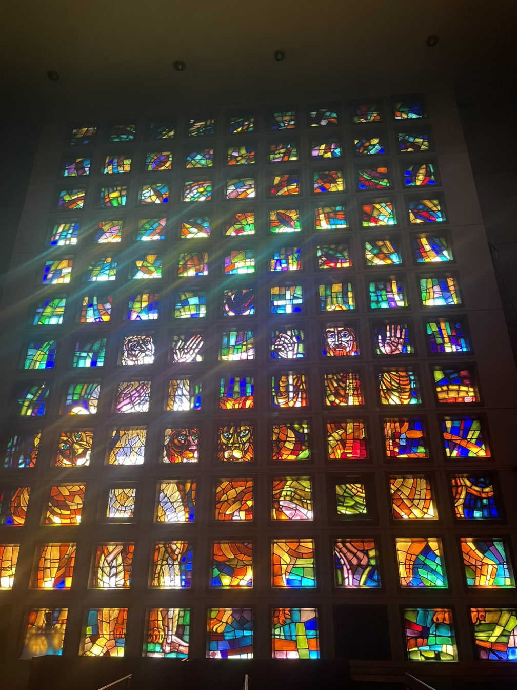 스테인드글라스를 이용해서 성경 인물과 성경의 사건들을 잘 묘사해 놓았는데 상당히 아름다웠다