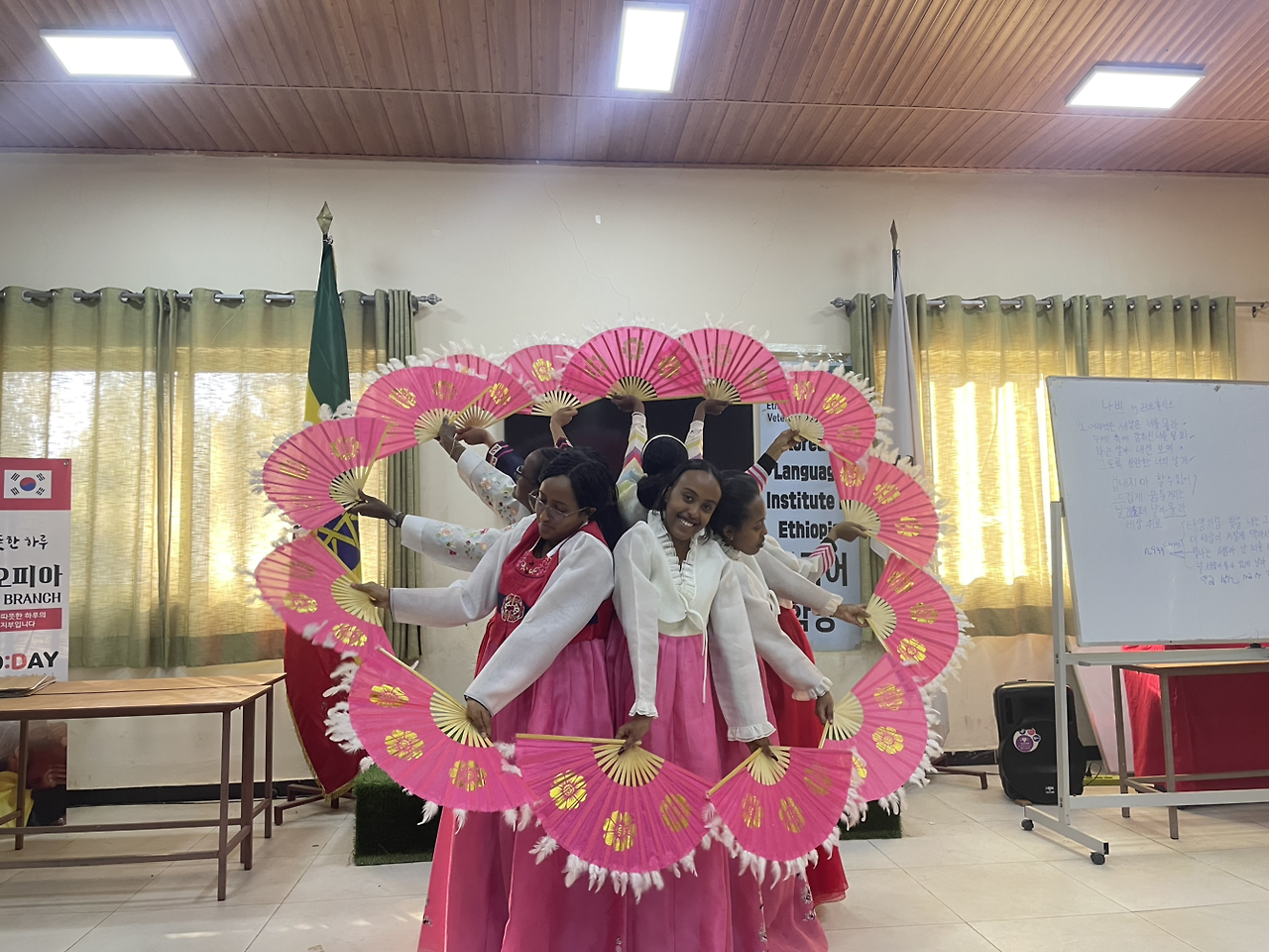 인사를 하고 집으로 가려는데 갑자기 부채춤을 보여주겠다고 한다