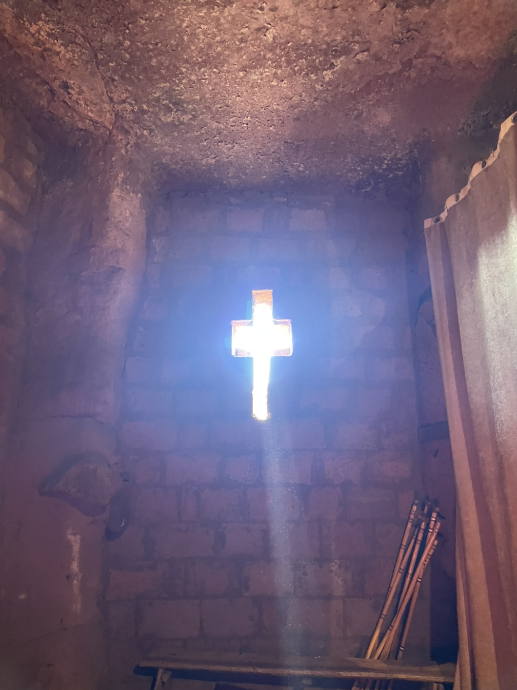 선물도 하나 받았는데 작은 나무로 깎은 십자가 팔찌였다