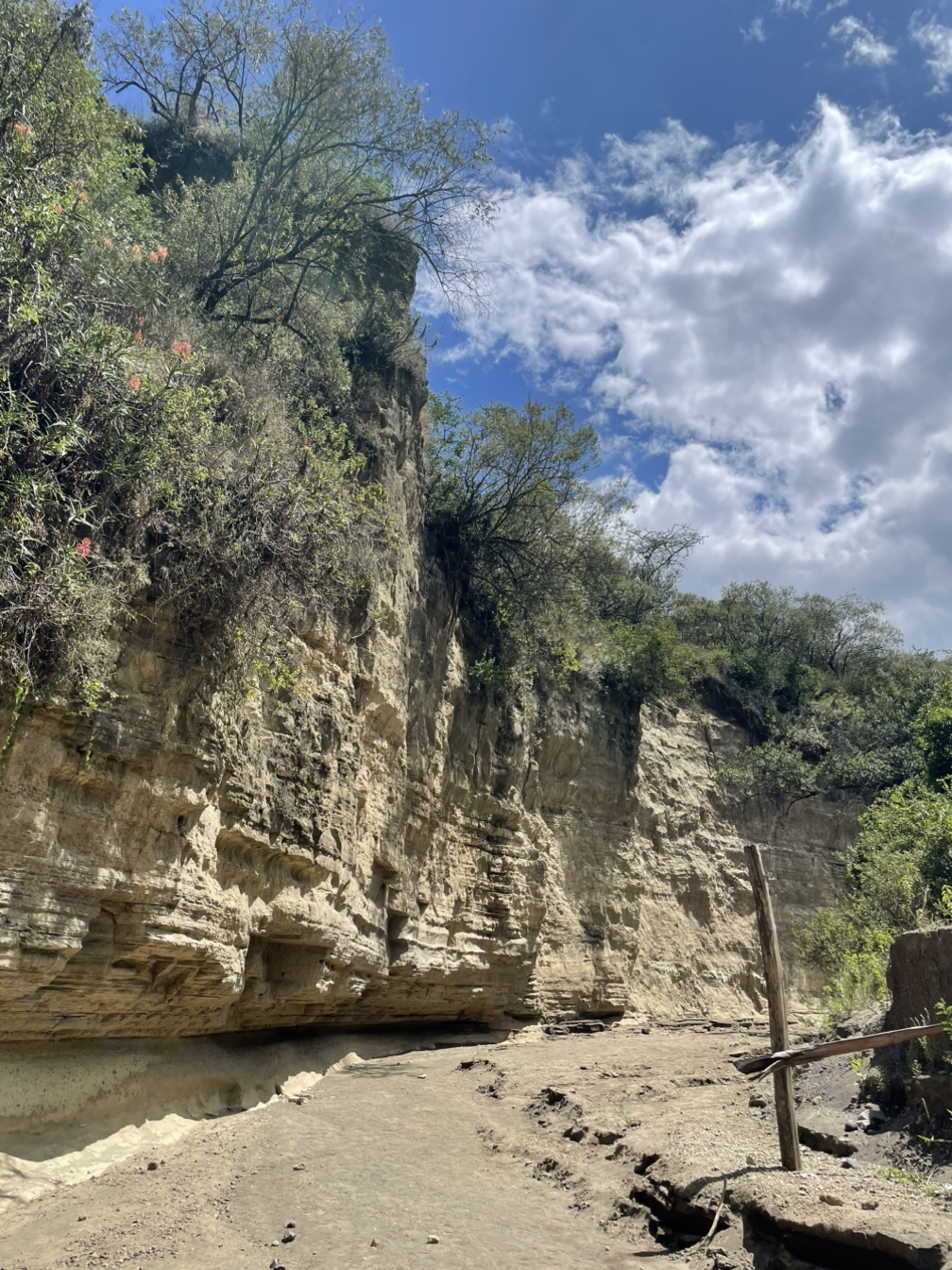 계곡을 탐험하는데 화산 활동으로 물이 뜨겁게 나왔다