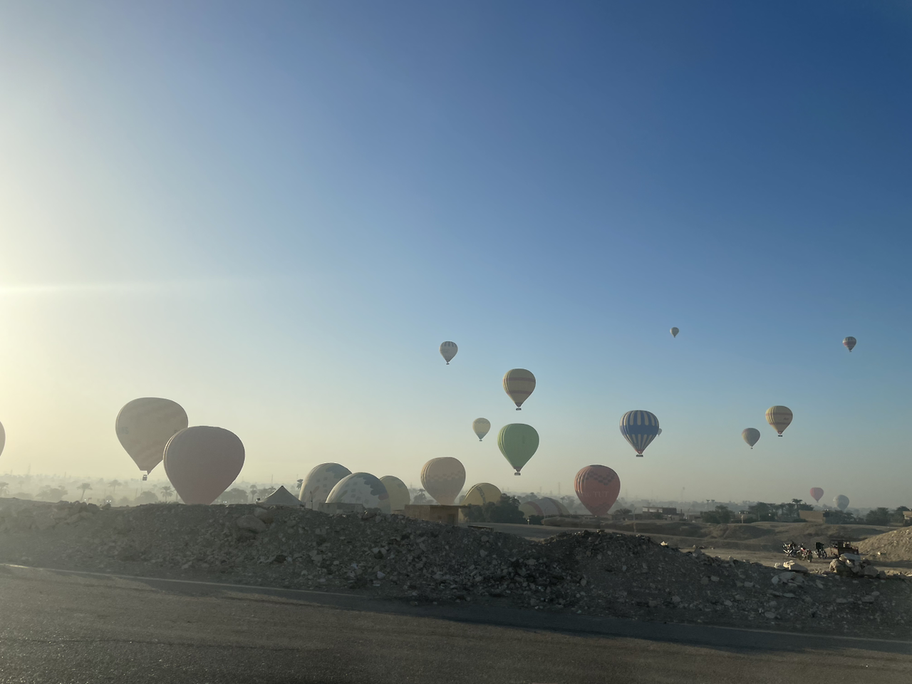 아침에 서쪽 지역으로 들어서는데 열기구들이 보인다
