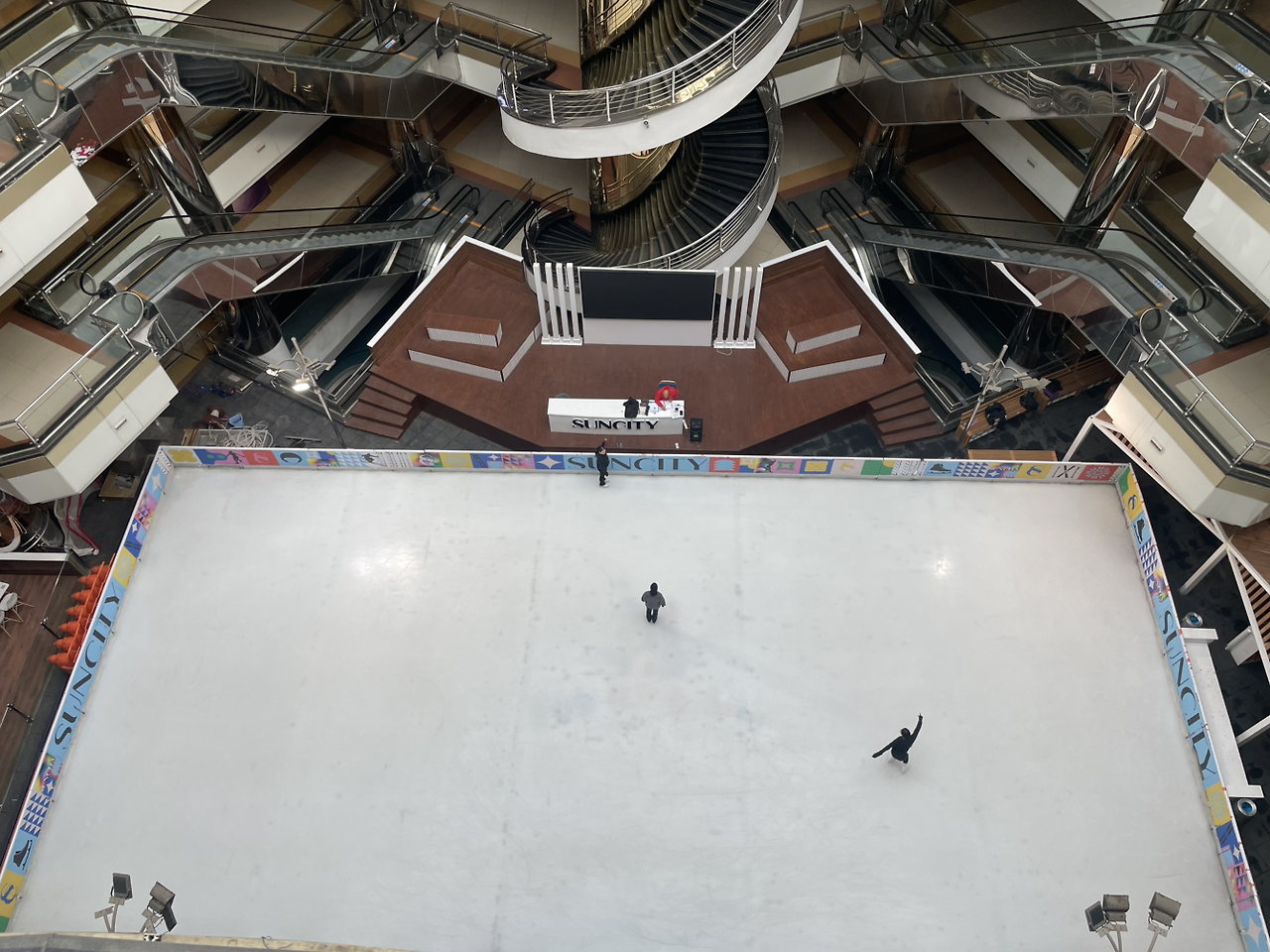 저 아래 보이는 아이스링크에 사람 서너 명만 보일 뿐이었다