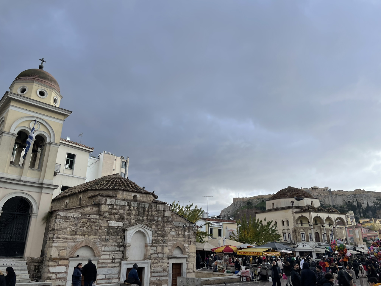 멀리 아크로폴리스가 보이고 광장과 많은 관광객들과 이쁜 거리들이 어우러진 풍경을 보니 신기하다는 생각을 하게 된다