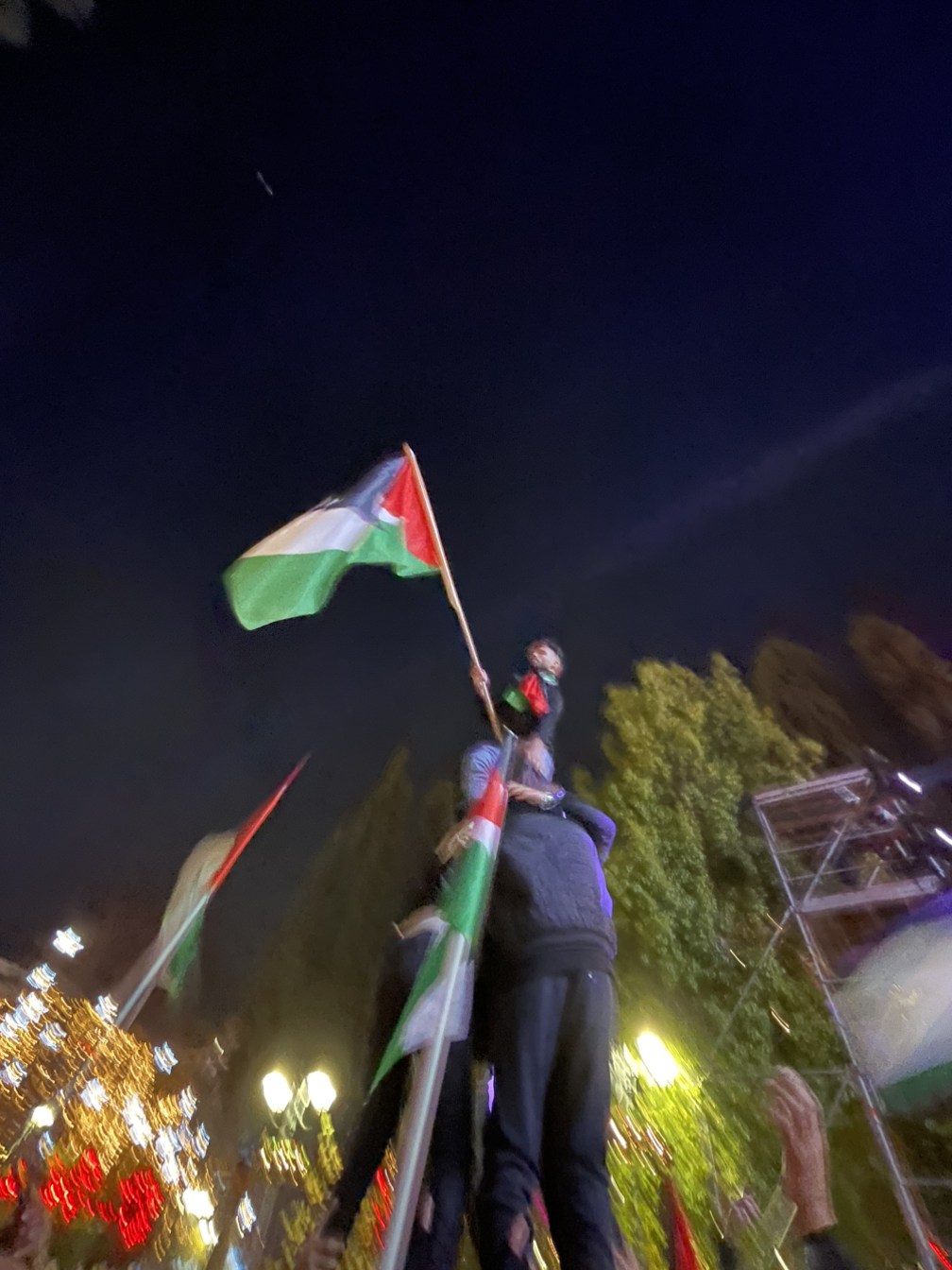 팔레스타인 국기를 들고 오신 무리가 있었는데 사람으로 높은 탑을 만들고 올라가서 국기를 흔들었다