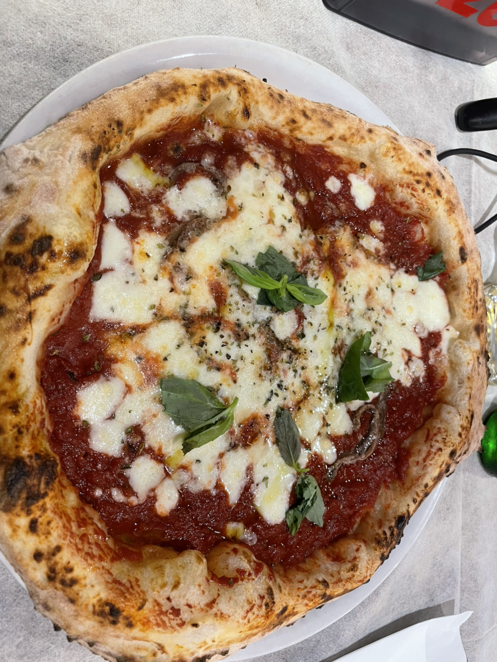 마르게리따 기반의 피자에 엔쵸비 세네 덩어리가 올라가 있었다